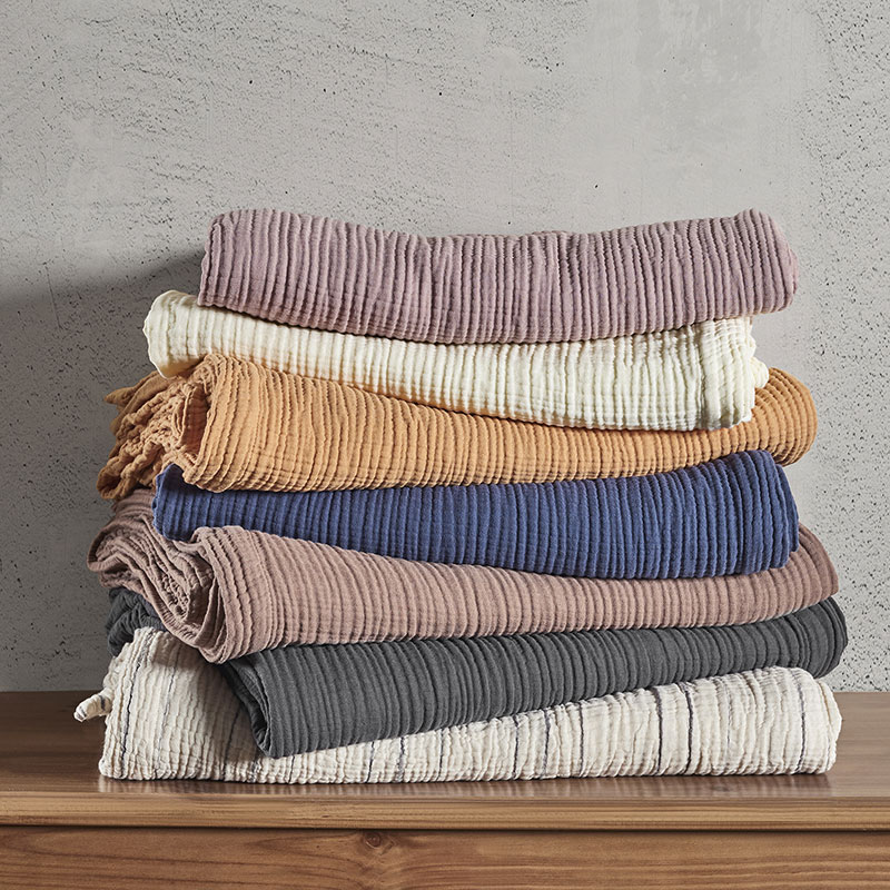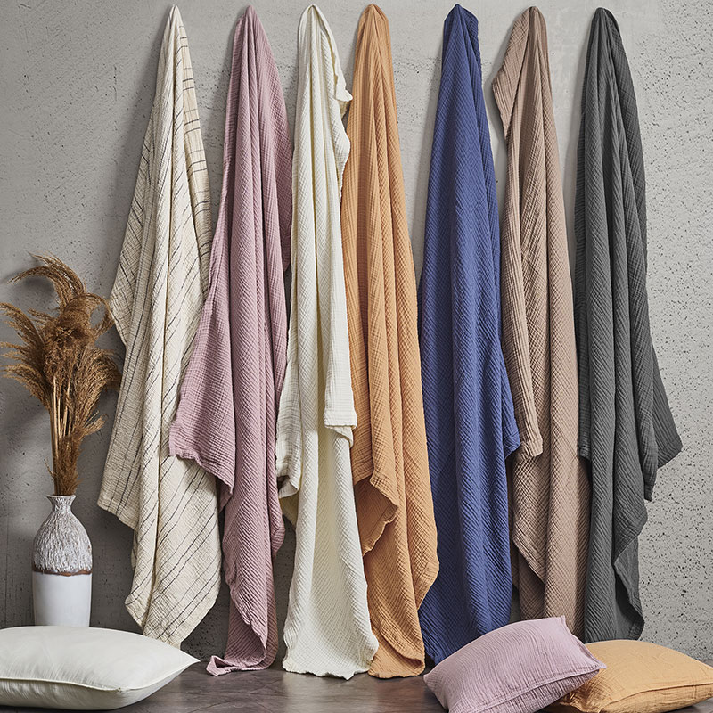 Представляем Вашему вниманию пледы из муслина - мягкие, воздушные и очень уютные. Их можно использовать в качестве покрывала или легкого одеяла в теплое время года. Муслин легок в уходе и быстро сохнет после стирки.