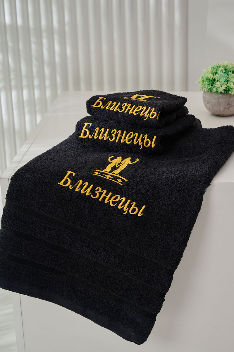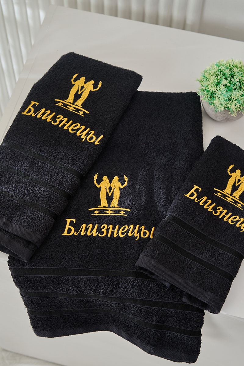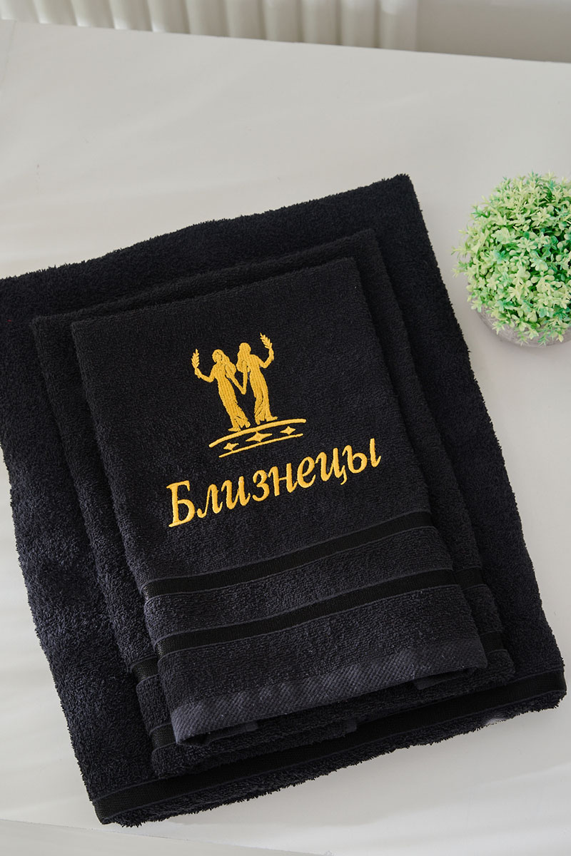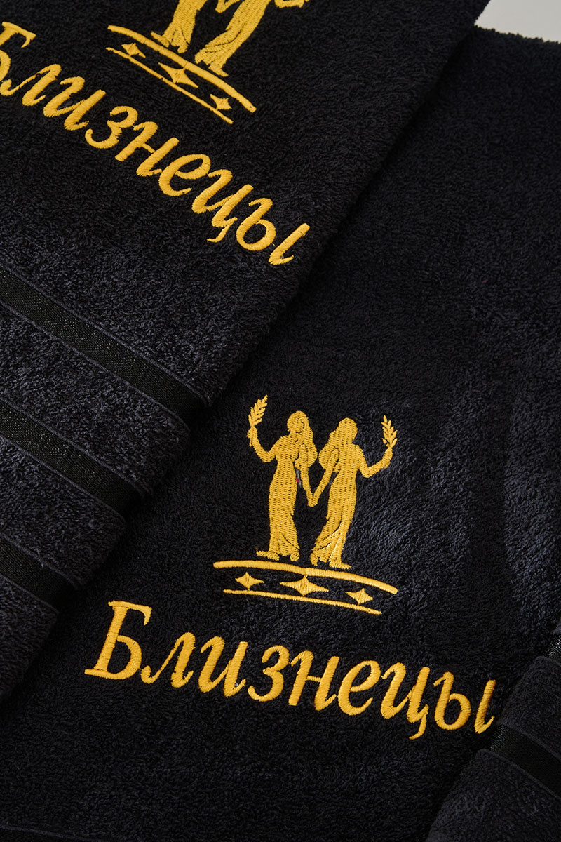 Полотенце махровое с вышивкой "Знаки зодиака" 14418/10 черный Близнецы