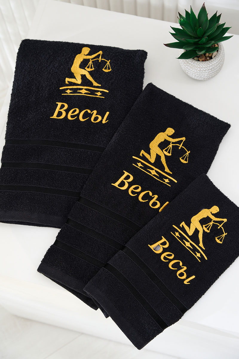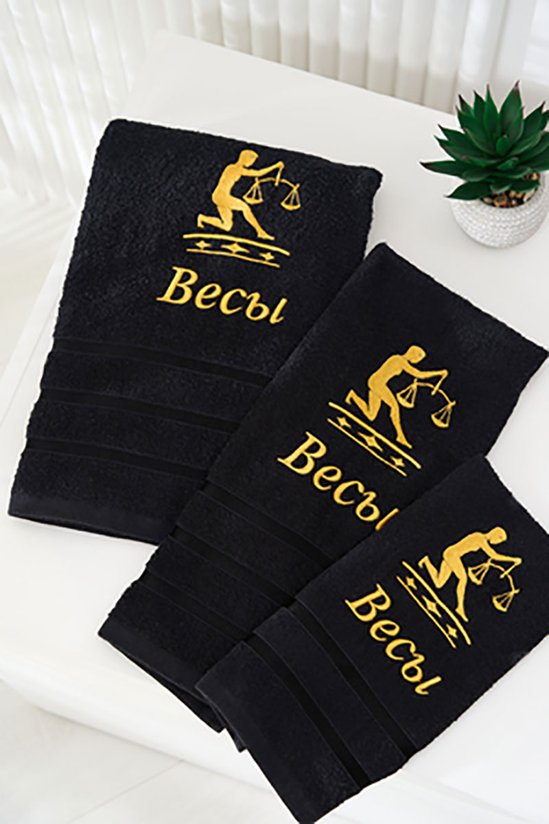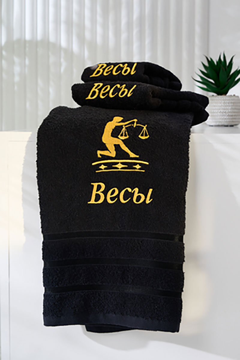 Полотенце махровое с вышивкой "Знаки зодиака" 14418/10 черный Весы