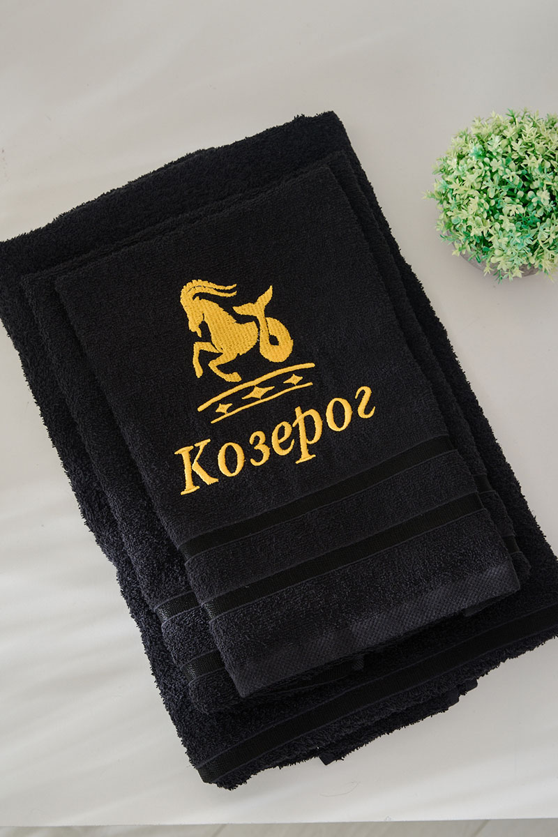 Полотенце махровое с вышивкой "Знаки зодиака" 14418/10 черный Козерог