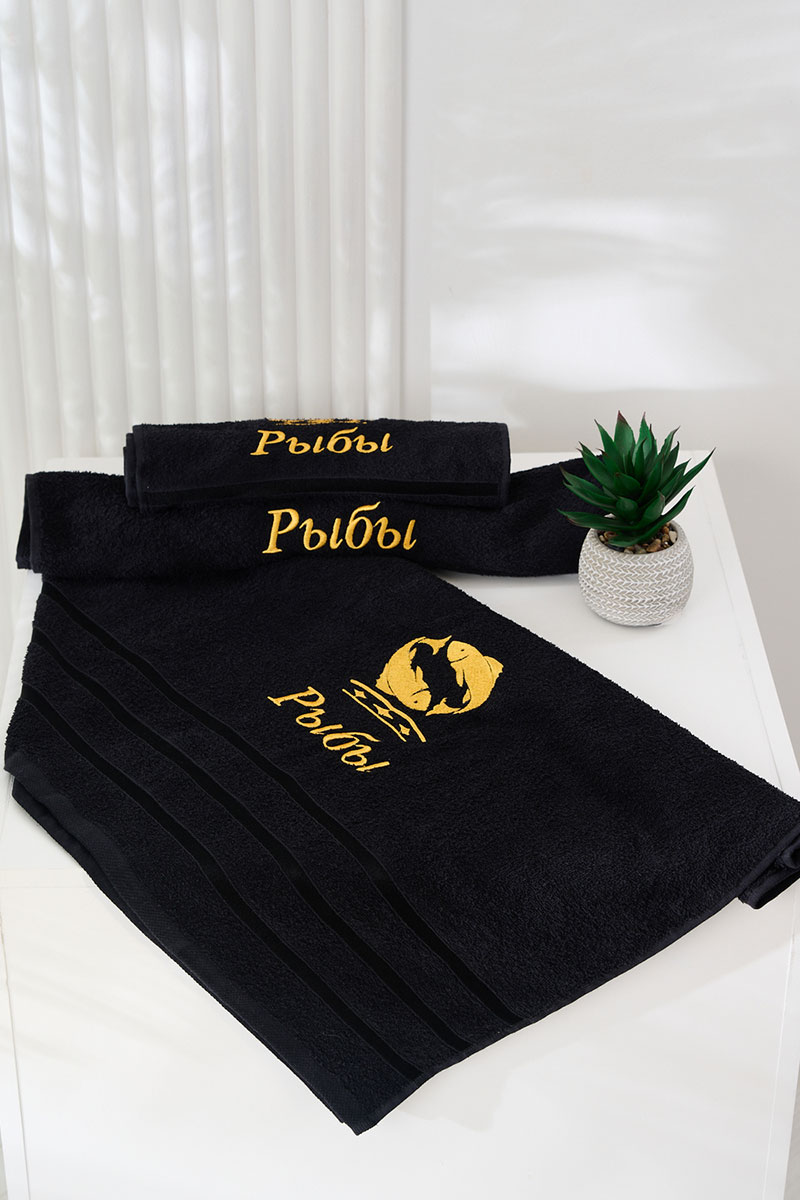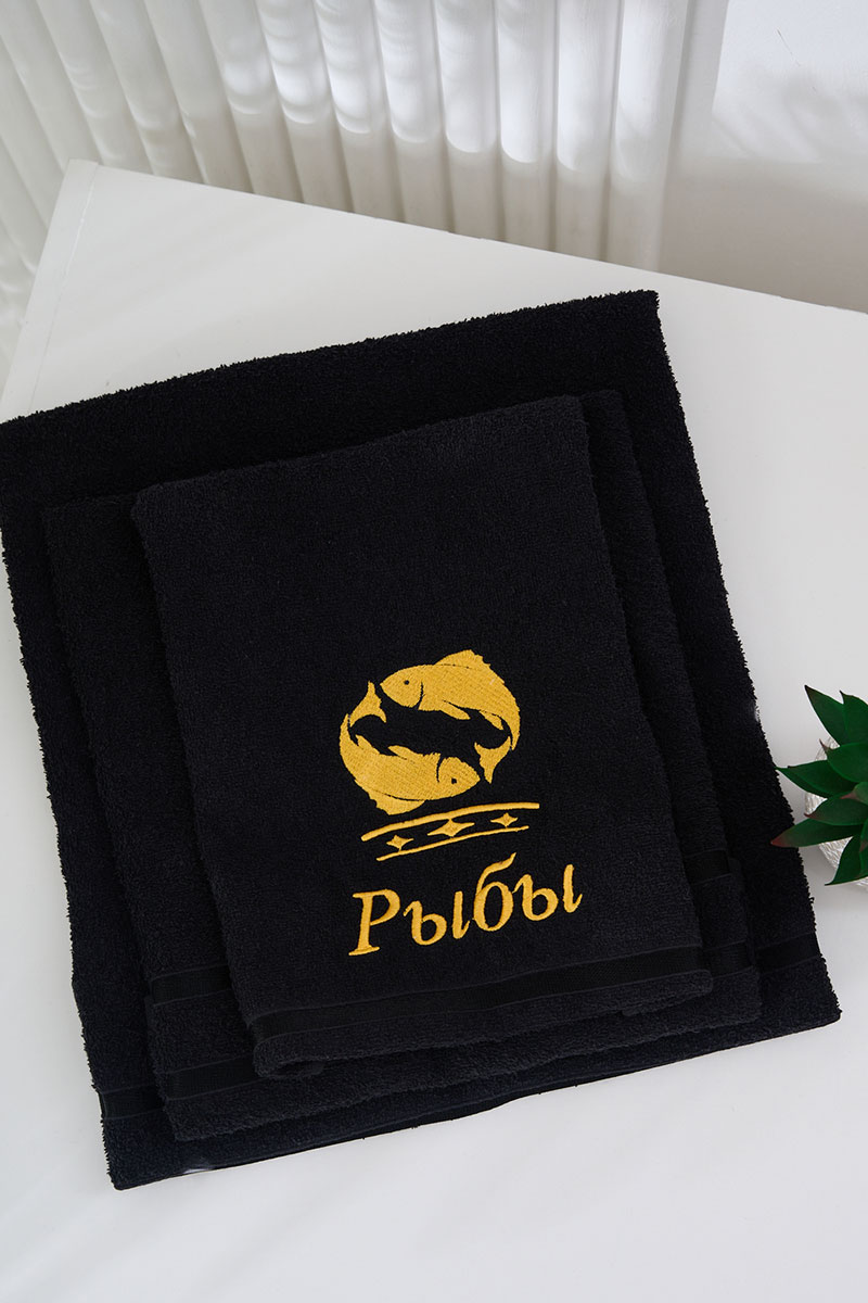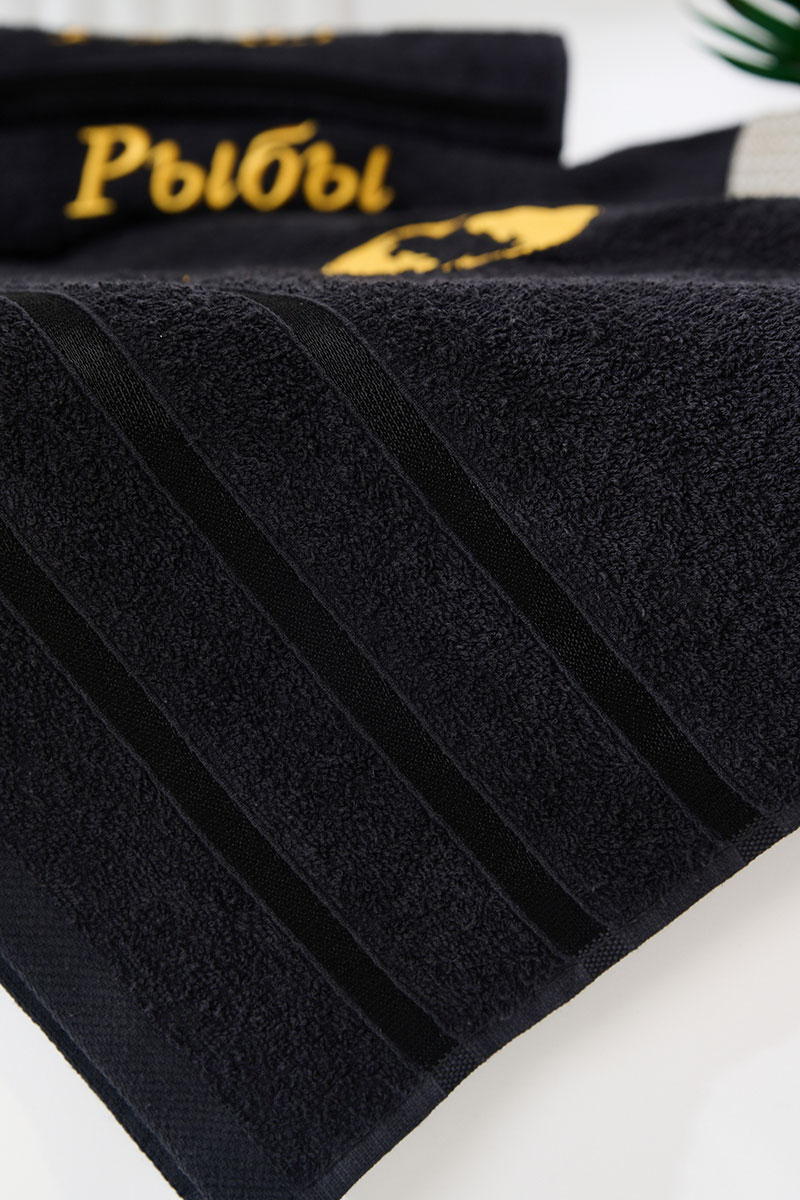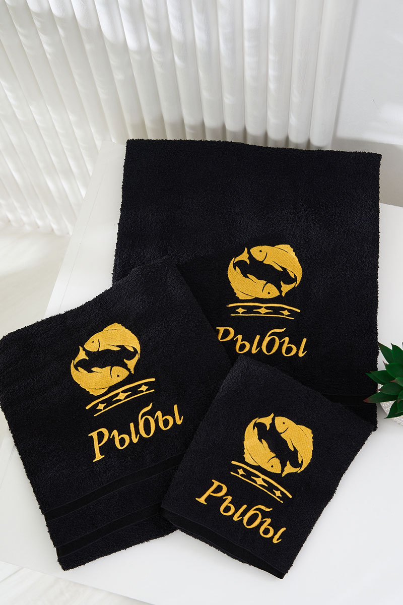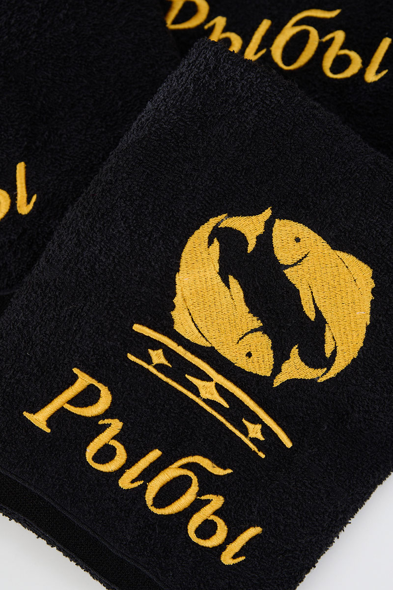 Полотенце махровое с вышивкой "Знаки зодиака" 14418/10 черный Рыбы