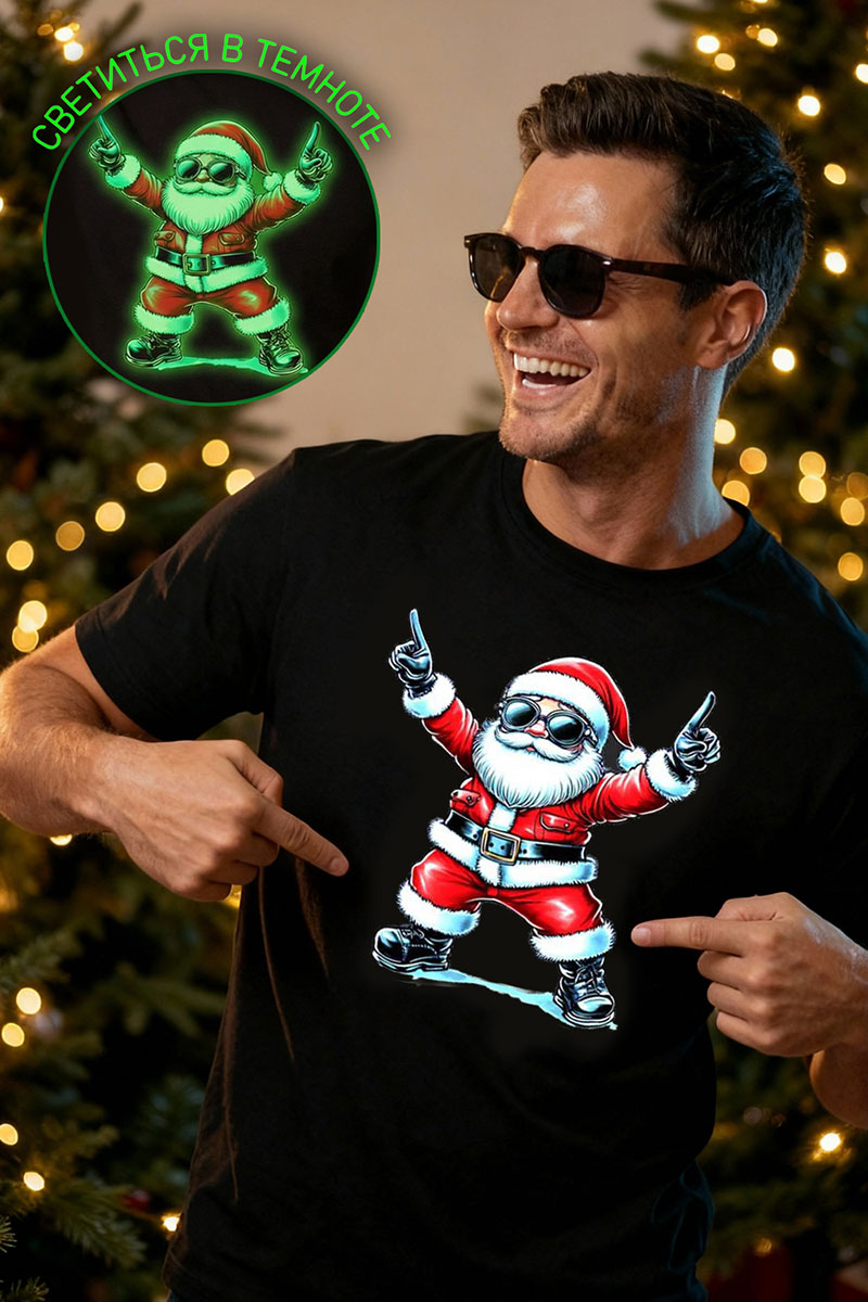 Футболка унисекс светящаяся №8581 кулирка (р-ры: 48-58) черный ДедМ крутой