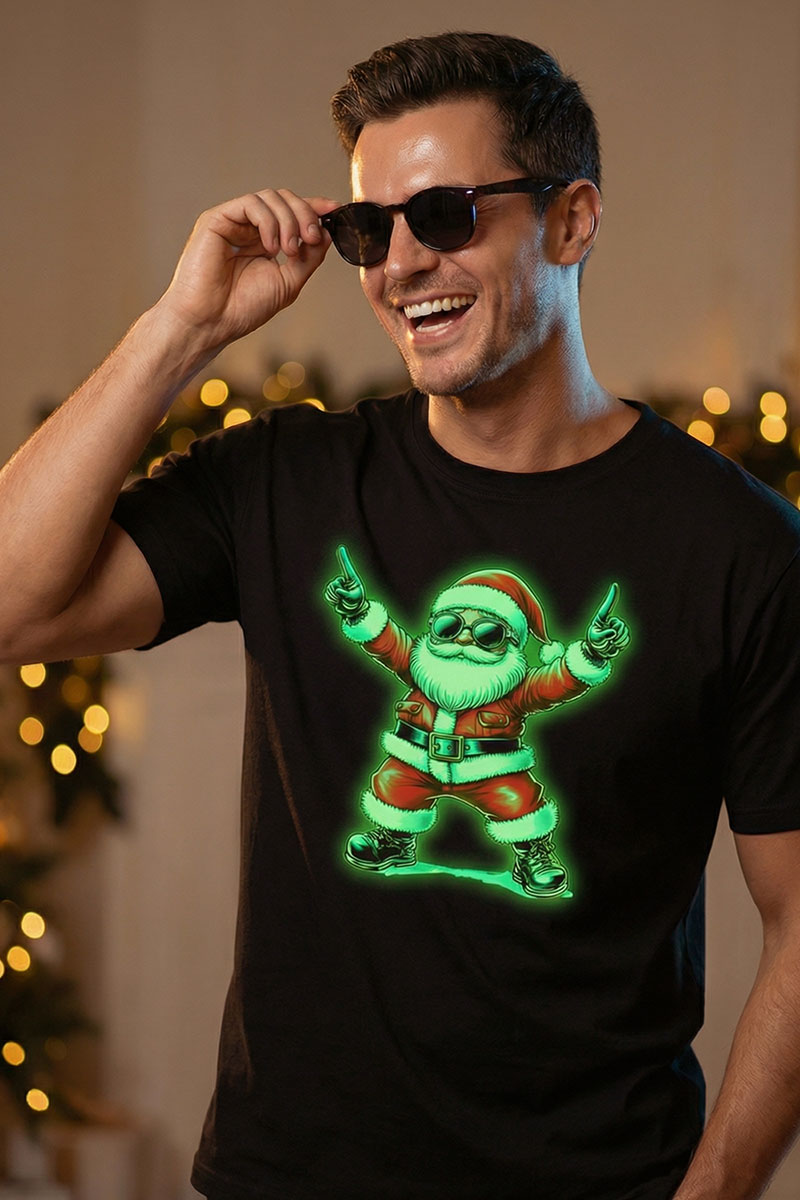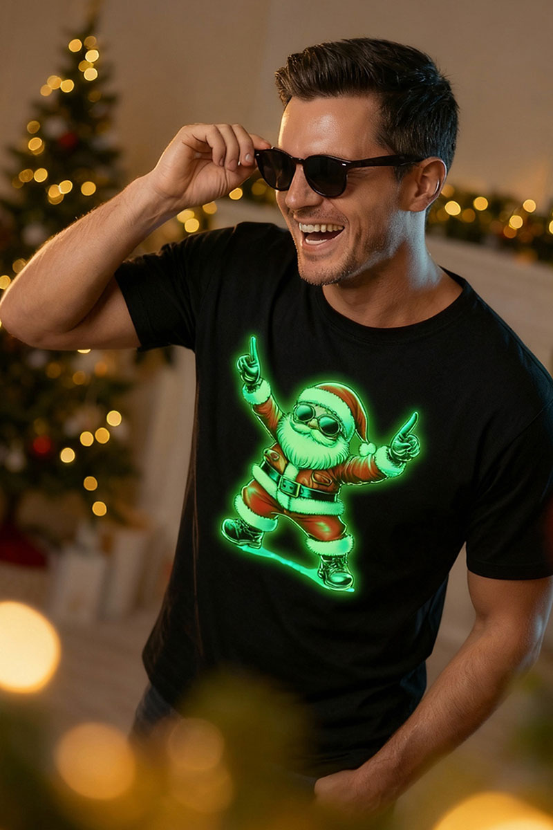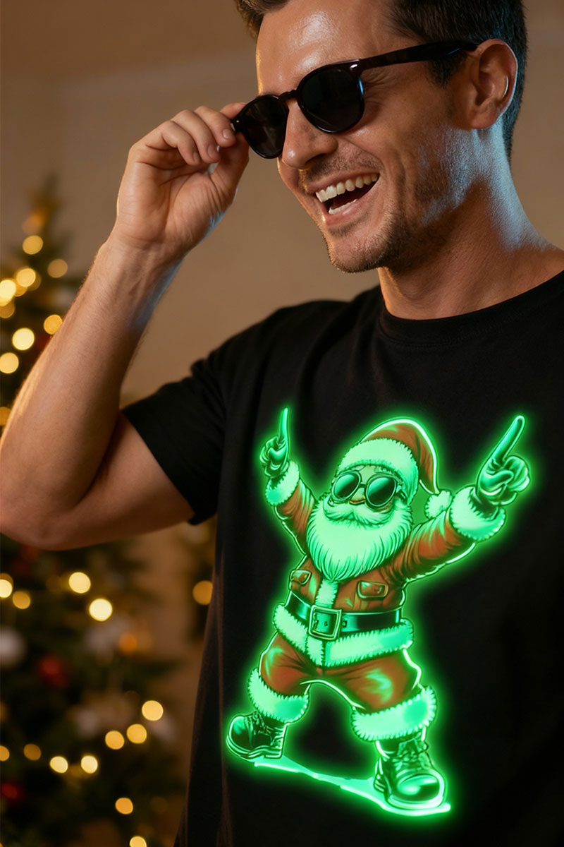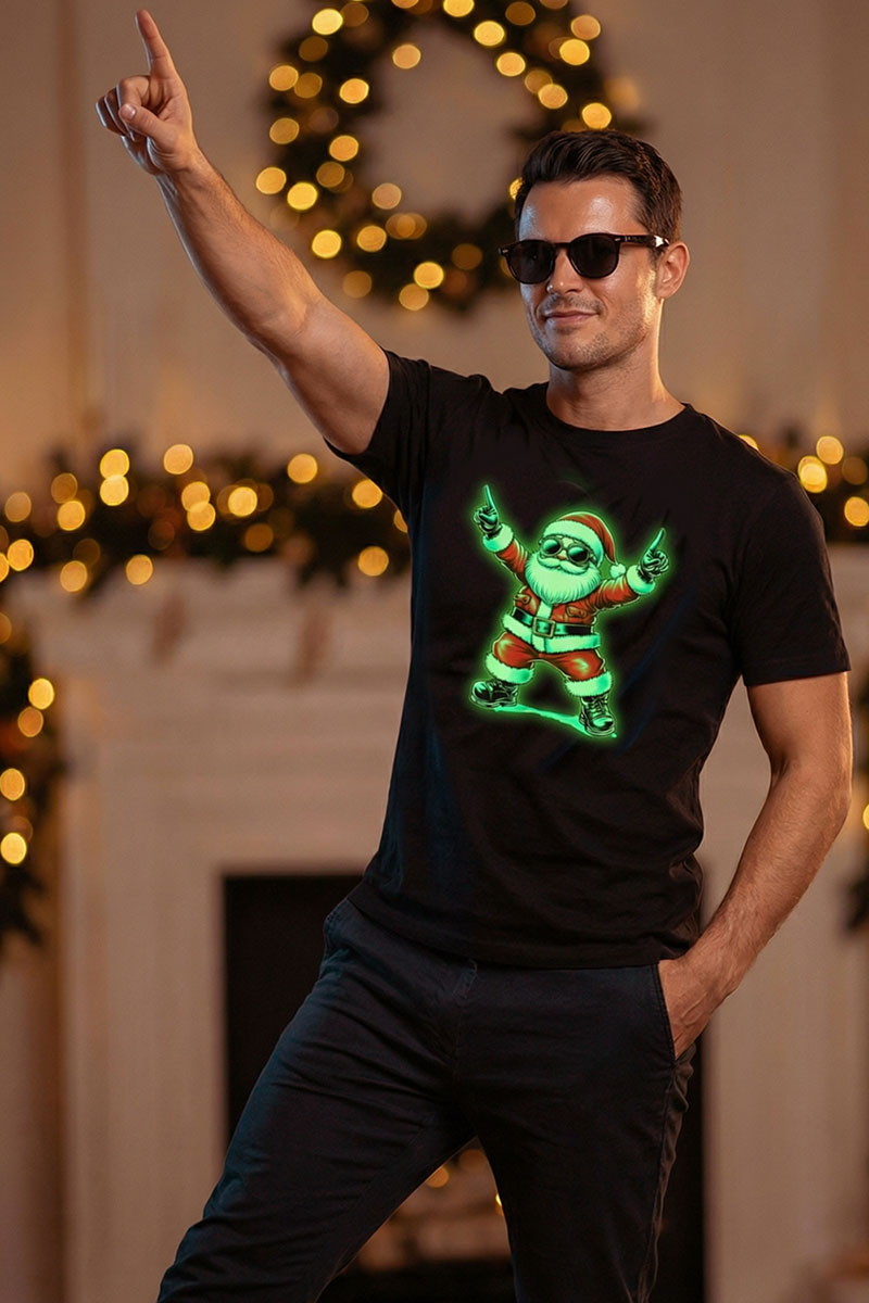 Представляем Вашему вниманию крутую футболку. Представьте: Новый год, вечеринка в разгаре, а вы в стильной красной футболке с Сантой, который не просто раздает подарки, а зажигает на полную! На одной версии – Santa DJ в наушниках, миксует треки за пультом. На второй – Santa Rocker с гитарой, в прыжке, готовый к соло! Дизайн в белом и красном – яркий, юмористичный и супер-актуальный для праздников.