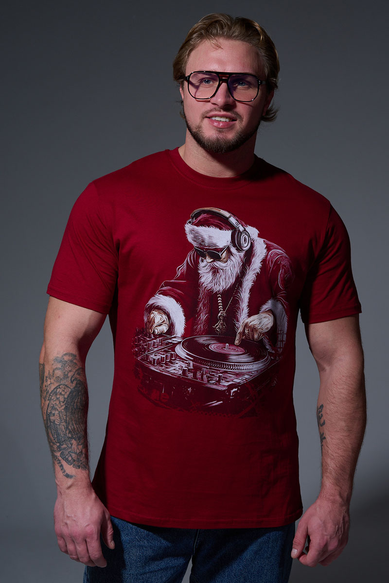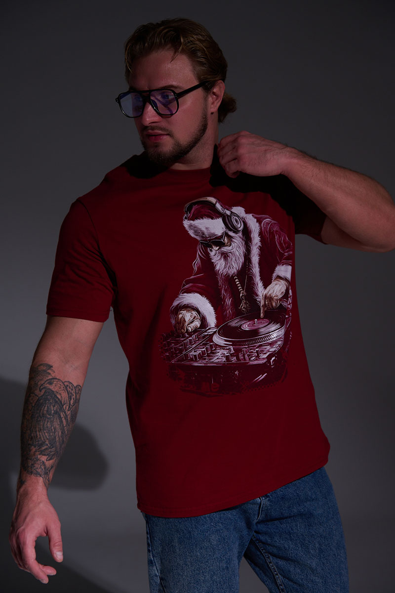 Представляем Вашему вниманию крутую футболку. Представьте: Новый год, вечеринка в разгаре, а вы в стильной красной футболке с Сантой, который не просто раздает подарки, а зажигает на полную! На одной версии – Santa DJ в наушниках, миксует треки за пультом. На второй – Santa Rocker с гитарой, в прыжке, готовый к соло! Дизайн в белом и красном – яркий, юмористичный и супер-актуальный для праздников.