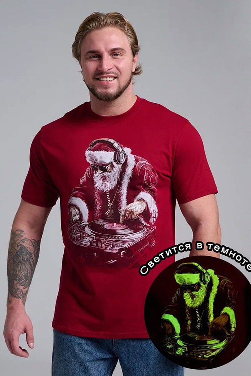 Футболка унисекс светящаяся №8581 кулирка (р-ры: 46-56) бордо диско ДедМ