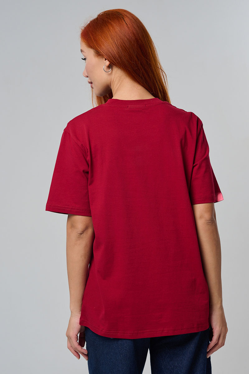 Футболка унисекс светящаяся №8585 кулирка с лайкрой (р-ры: 46-56) бордовый диско Снегурочка