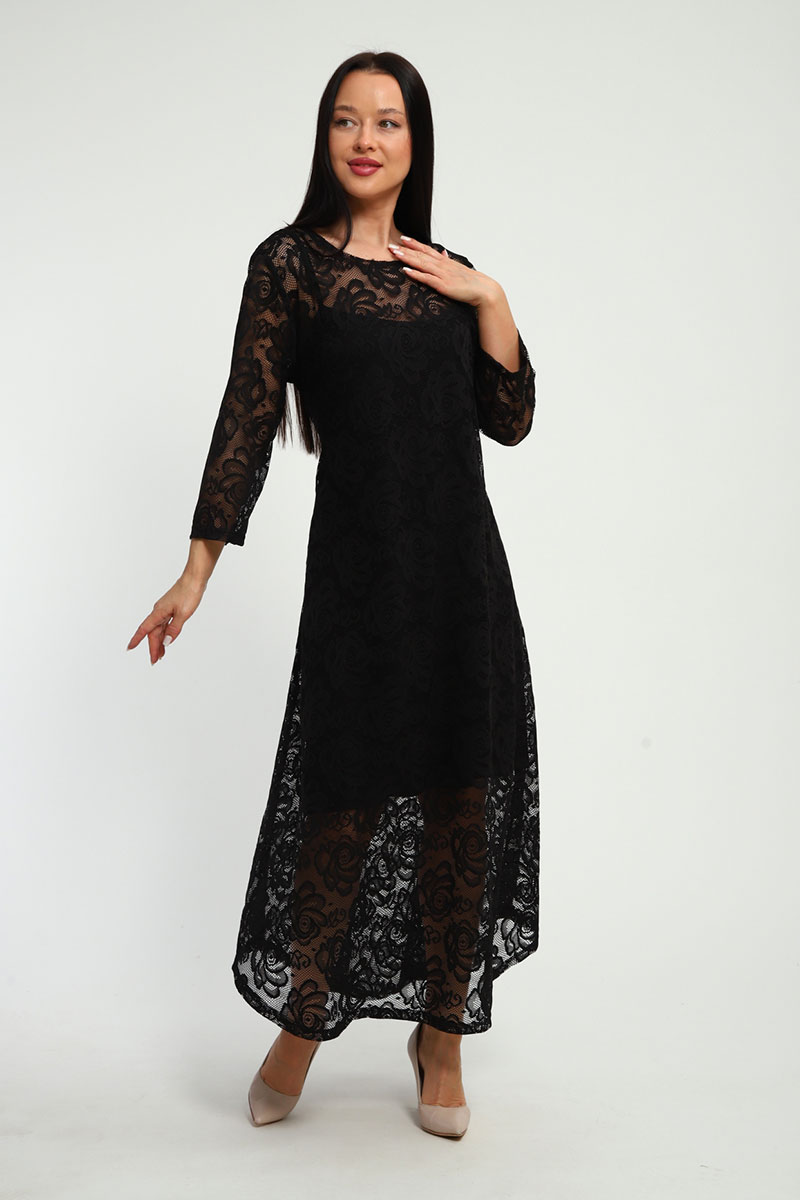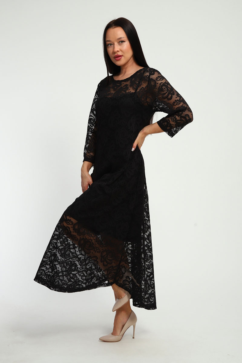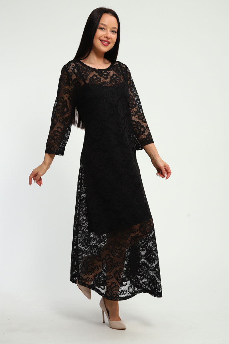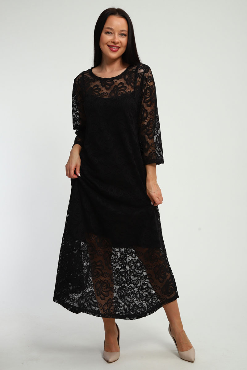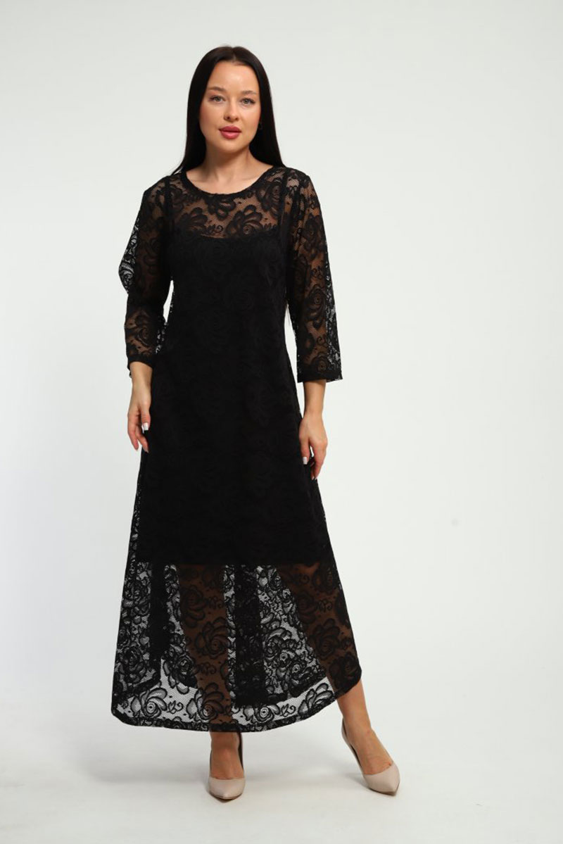 Платье женское П1370.2 вискоза с гипюром (р-ры: 48-62) черный