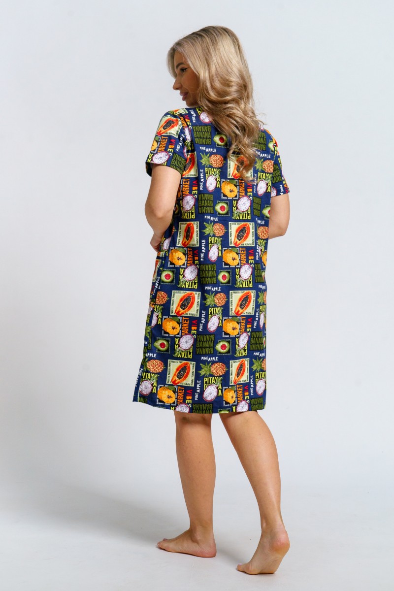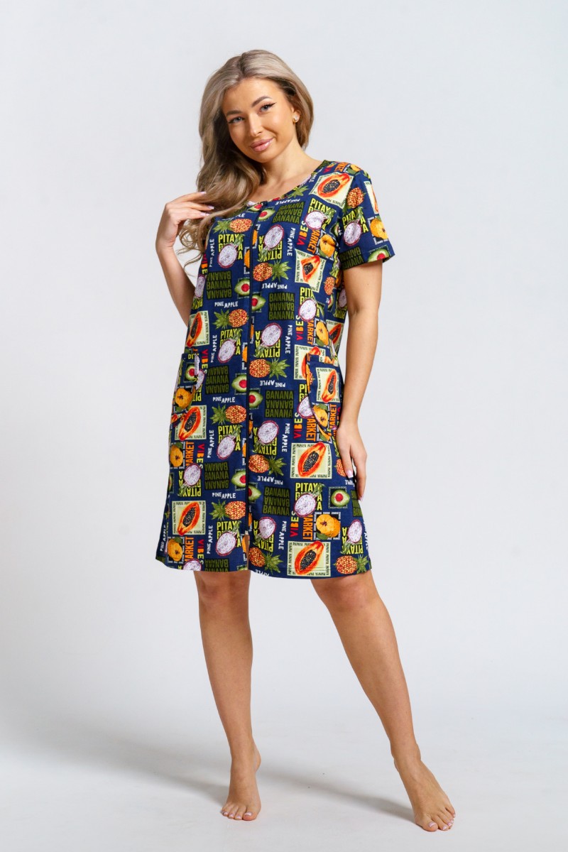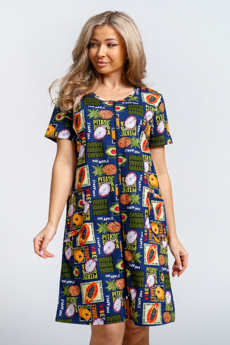Халат женский 924 "Тропики" кулирка (р-ры: 46-60) синий