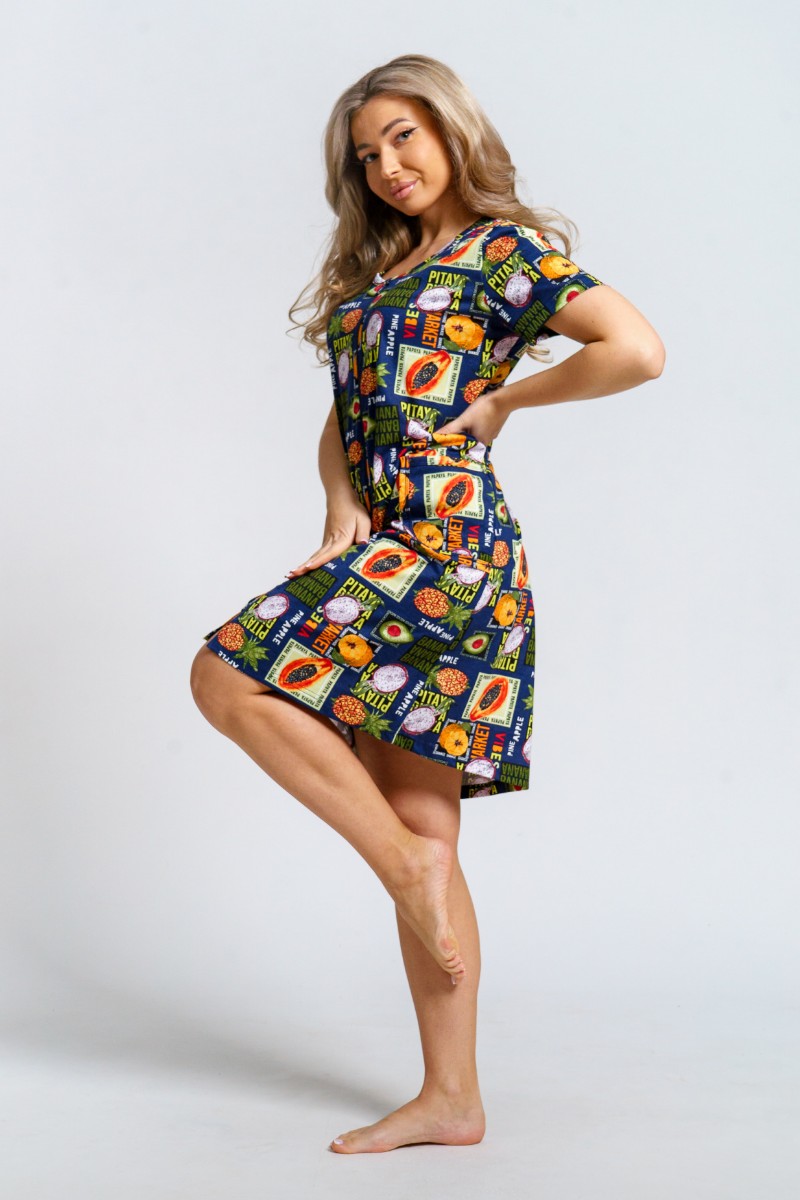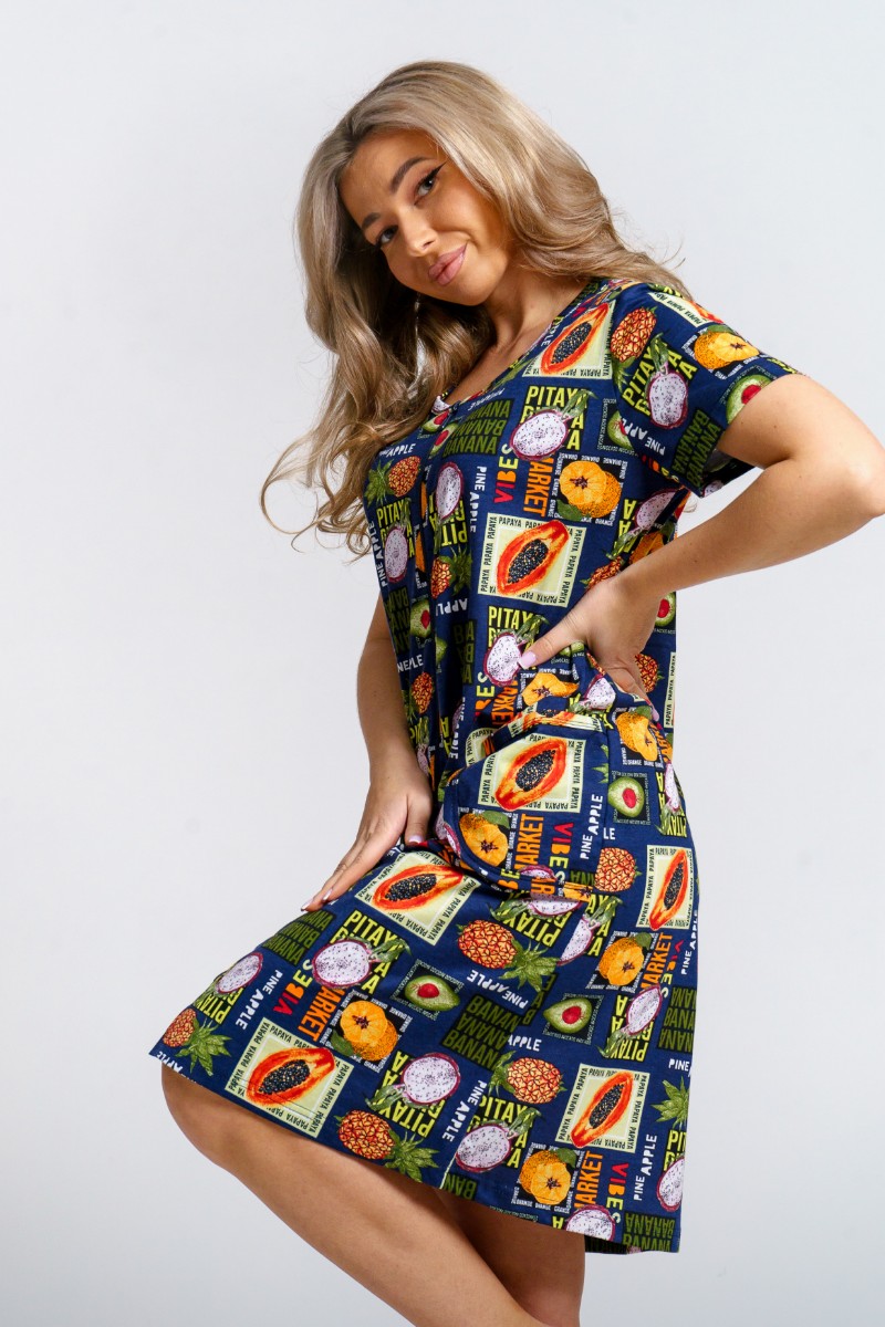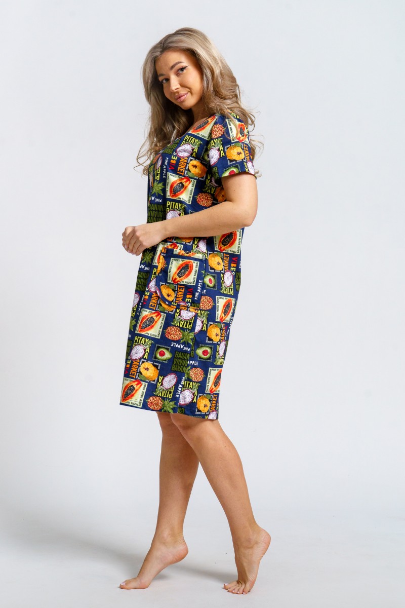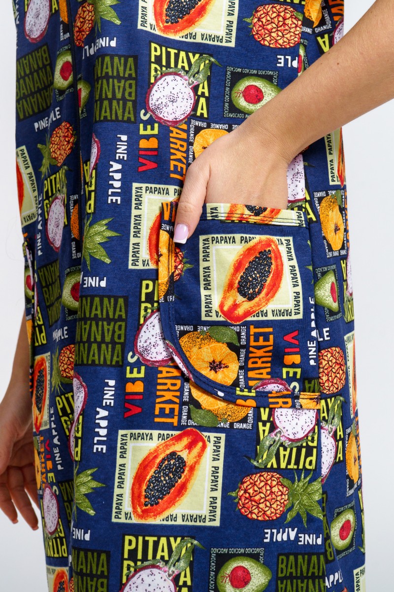 Халат женский 924 "Тропики" кулирка (р-ры: 46-60) синий