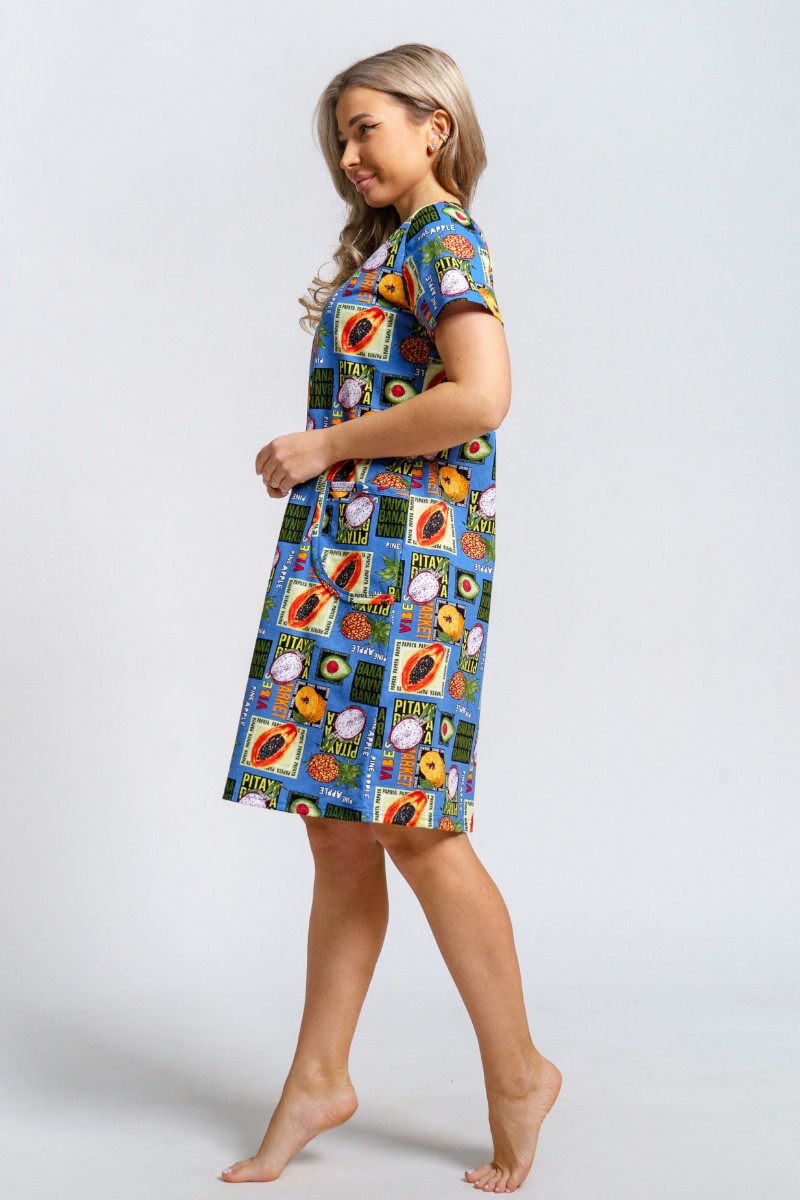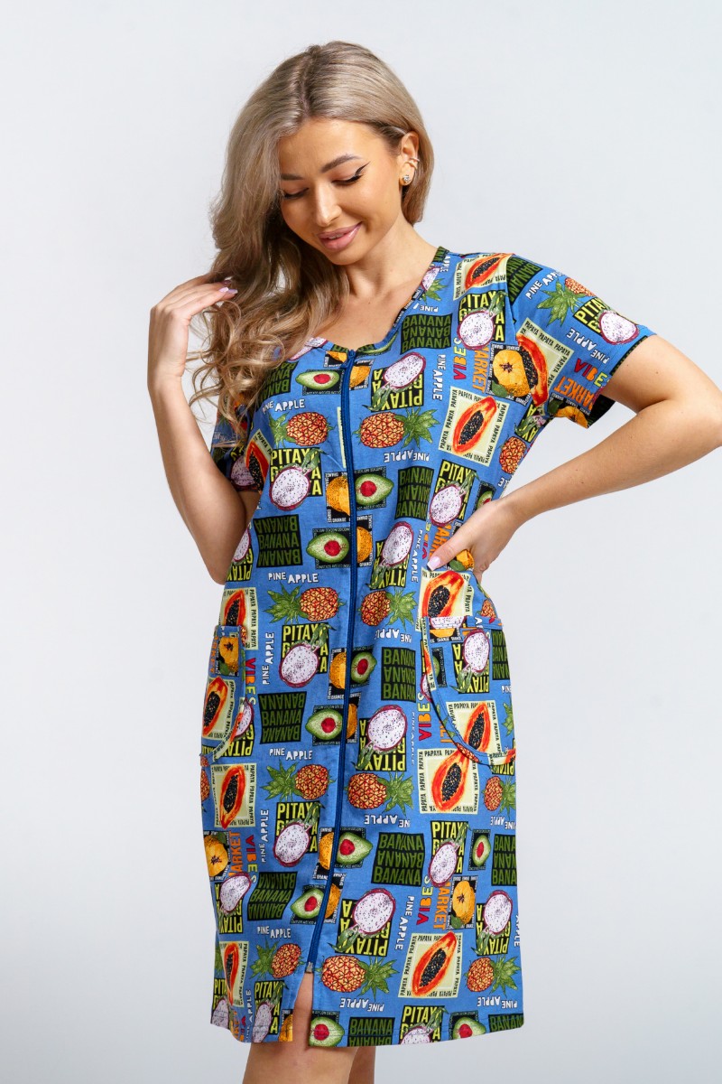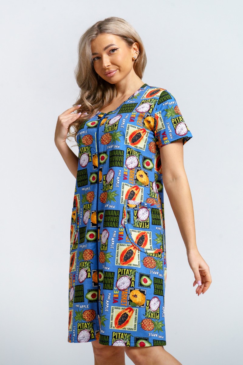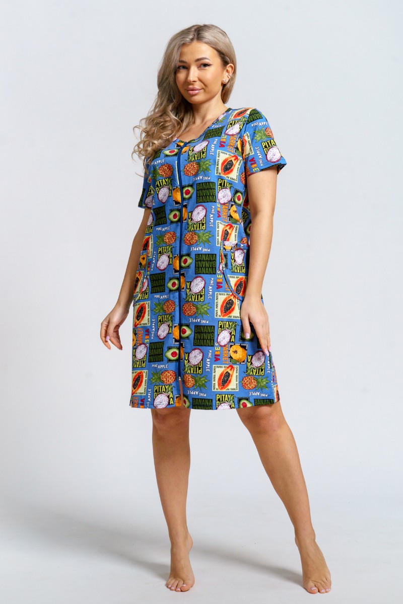 Халат женский 924 "Тропики" кулирка (р-ры: 46-60) голубой