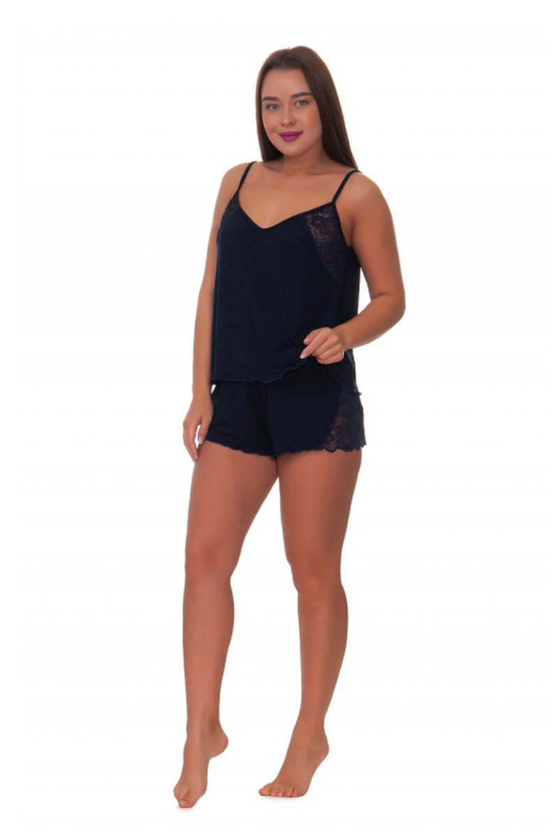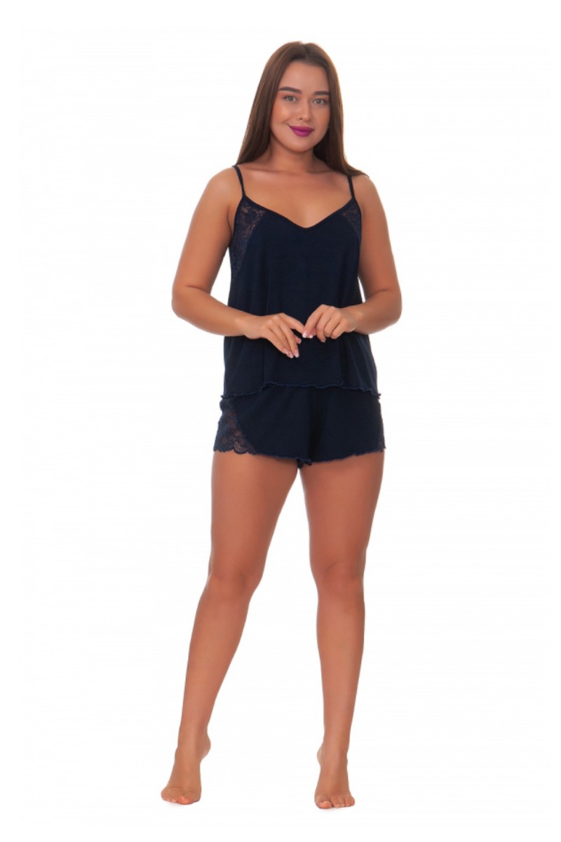 Представляем Вашему вниманию легкую женскую пижаму, сшитую из натуральной, приятной телу кулирки - 100% хлопок, позволяющий коже дышать. Топ на бретельках и шорты с гипюровыми вставками. Комплект обеспечит полную свободу движений в повседневной носке. В ней Ваш сон будет максимально приятным и расслабляющим.