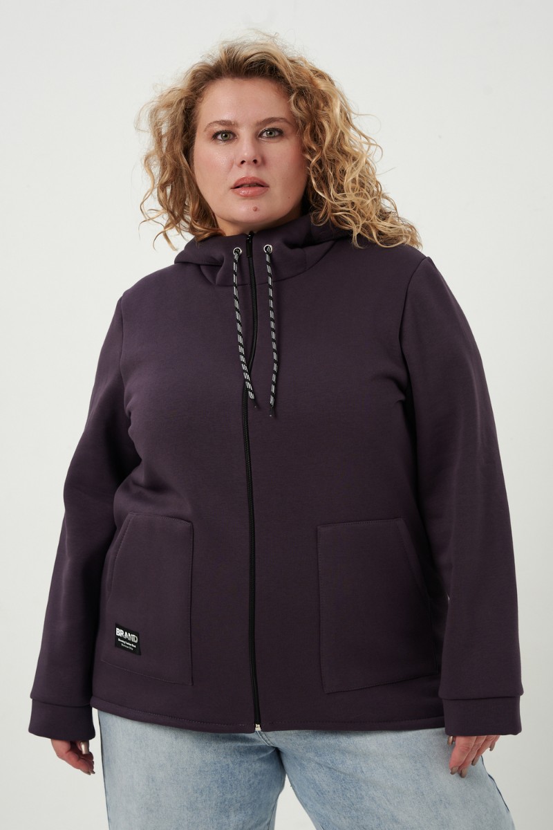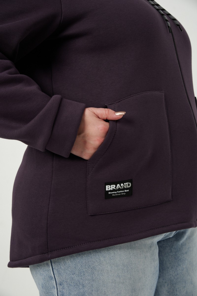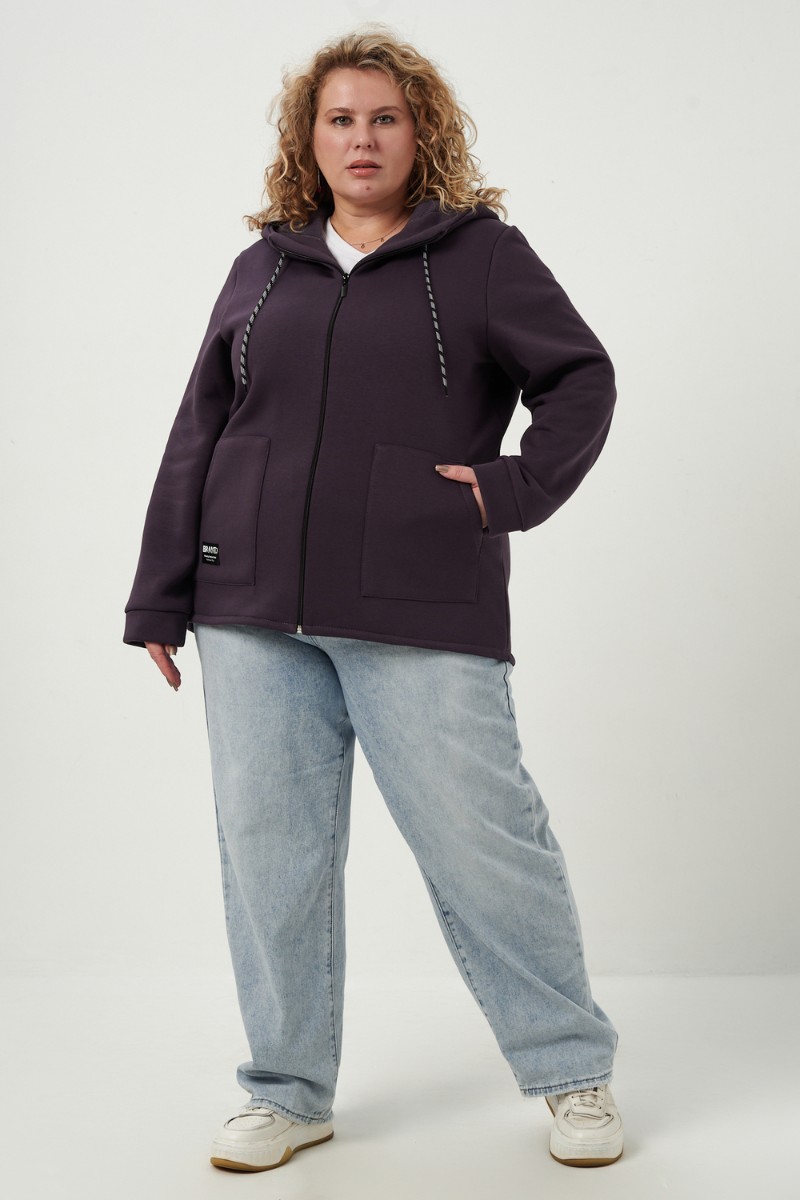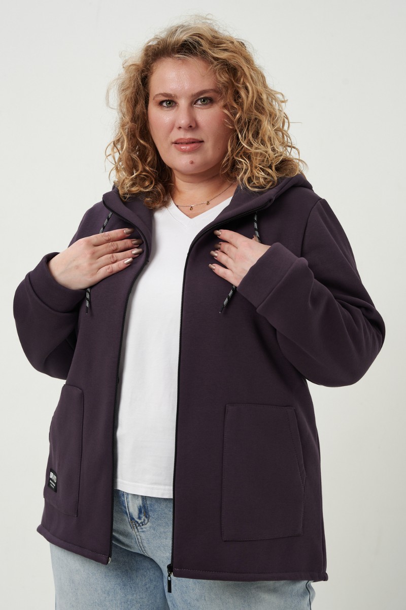 Толстовка женская №83606 футер 3-х нитка с начесом (р-ры: 56-70) серо-фиолетовый