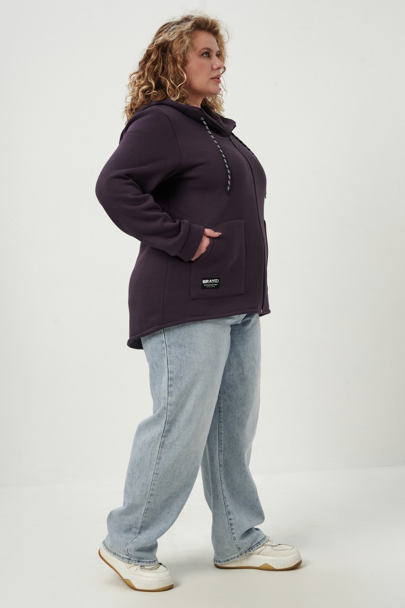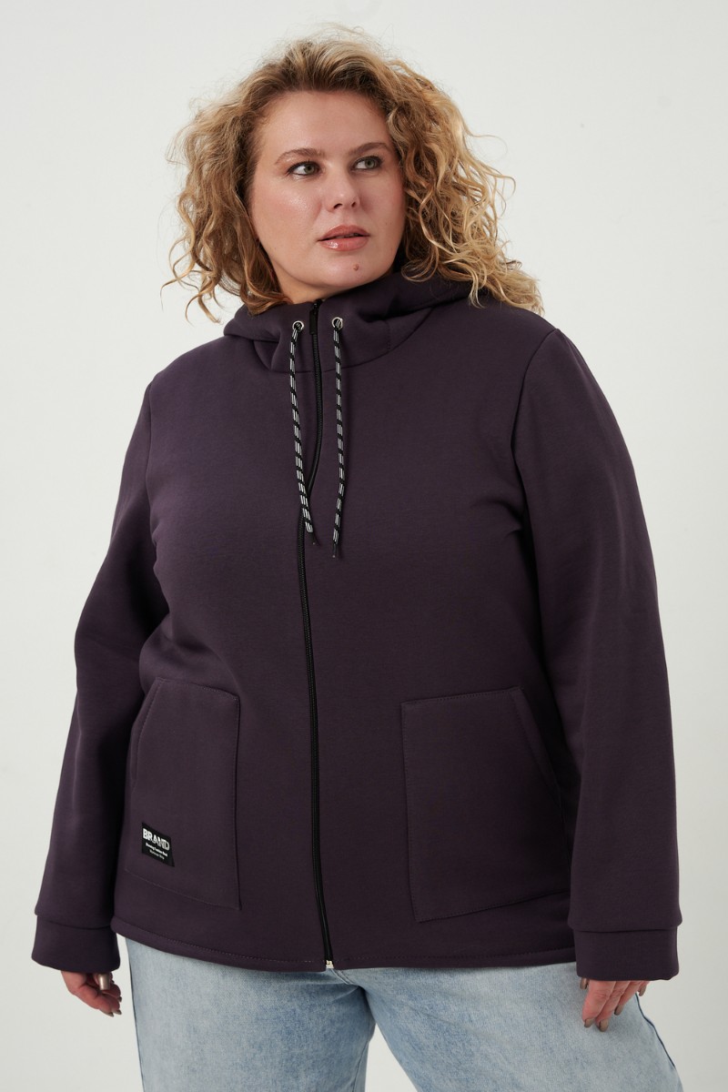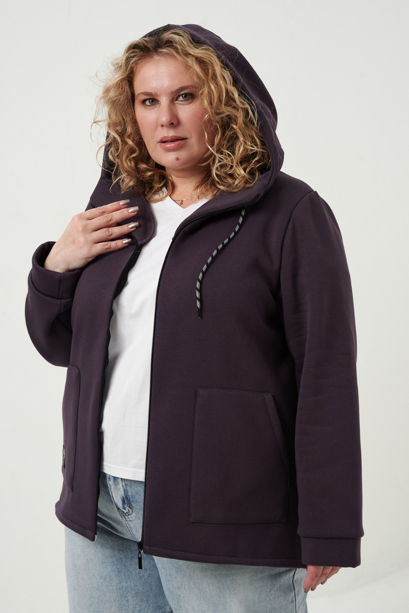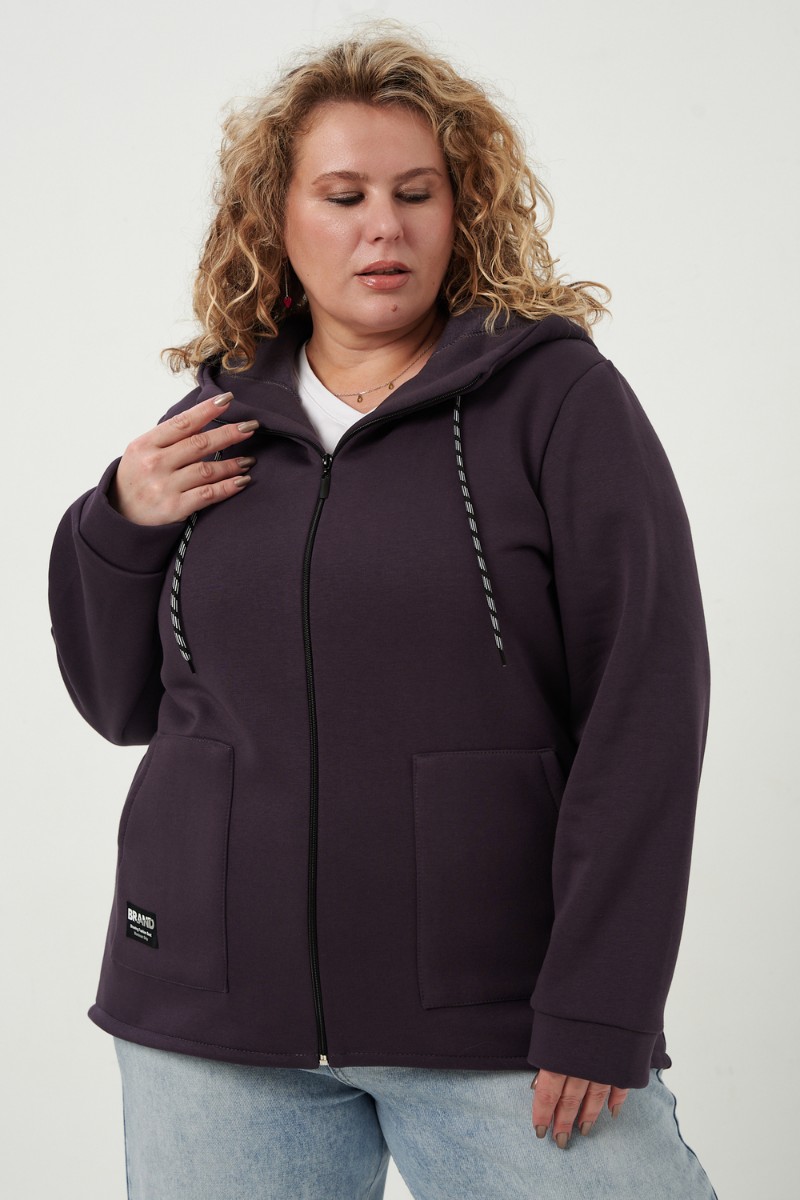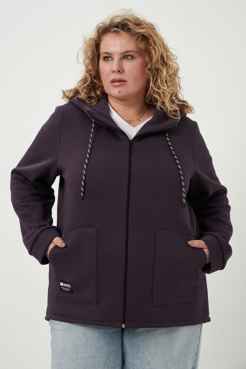 Толстовка женская №83606 футер 3-х нитка с начесом (р-ры: 56-70) серо-фиолетовый