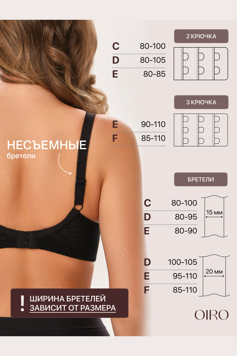 Размеры: Размеры: 80C, 85C, 85D, 85Е, 90C, 90D, 90E, 90F, 95C, 95D, 95E, 95F, 100C, 100D, 100E, 100F, 105D, 105E, 105F, 110F