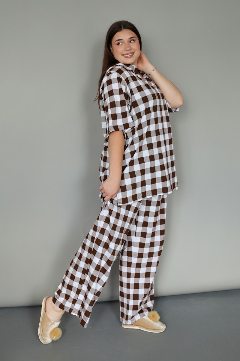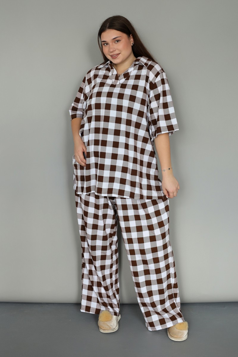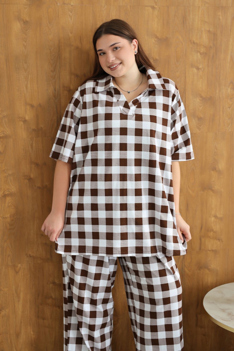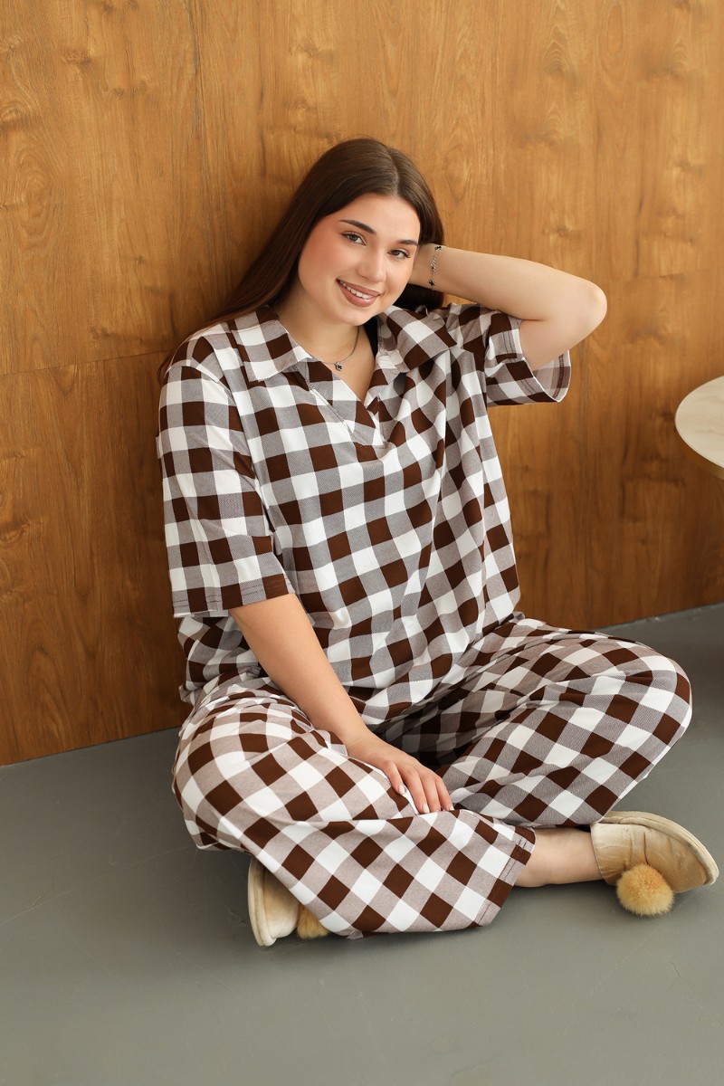 Представляем Вашему вниманию костюм домашний с брюками больших размеров – идеальный выбор для комфортного отдыха дома. Этот трикотажный комплект, выполненный из 100% хлопка, подарит вам ощущение нежности и мягкости на коже. Футболка поло с коротким рукавом и V-образным вырезом горловины обеспечивает удобство и свободу движений. Широкие брюки палаццо с высокой посадкой подчеркнут вашу фигуру и создадут элегантный силуэт. Этот костюм станет прекрасным подарком на любой праздник, будь то Новый год или день рождения. Он подойдет женщинам больших размеров, а также беременным, так как его покрой разработан специально для комфорта и удобства. Благодаря своей универсальности, костюм можно носить круглый год, создавая уютные образы для дома.
