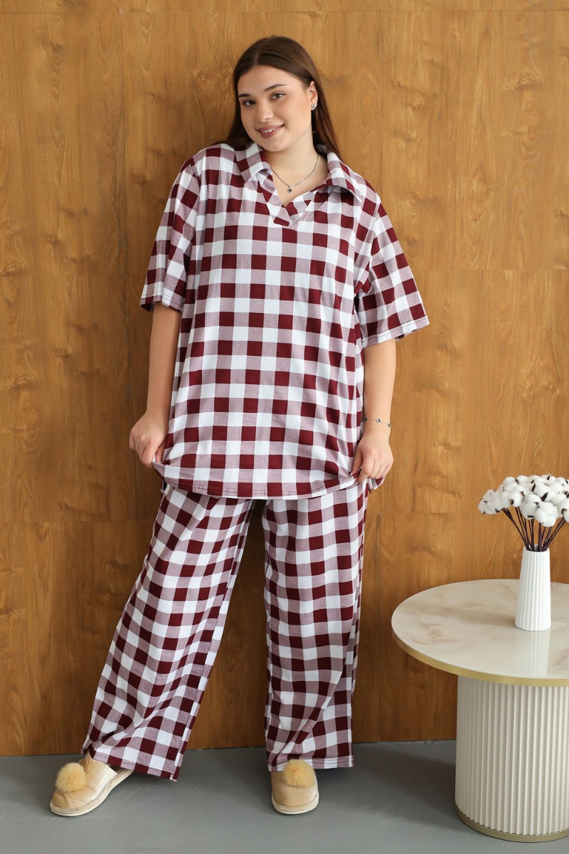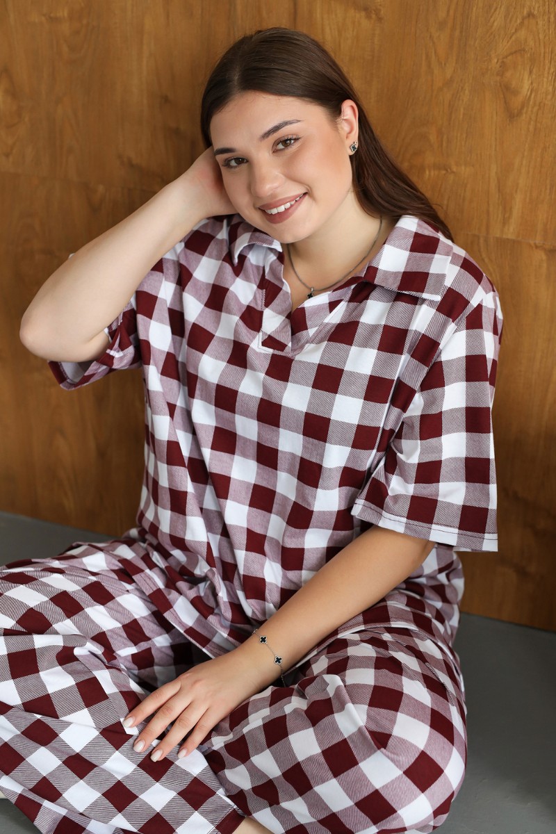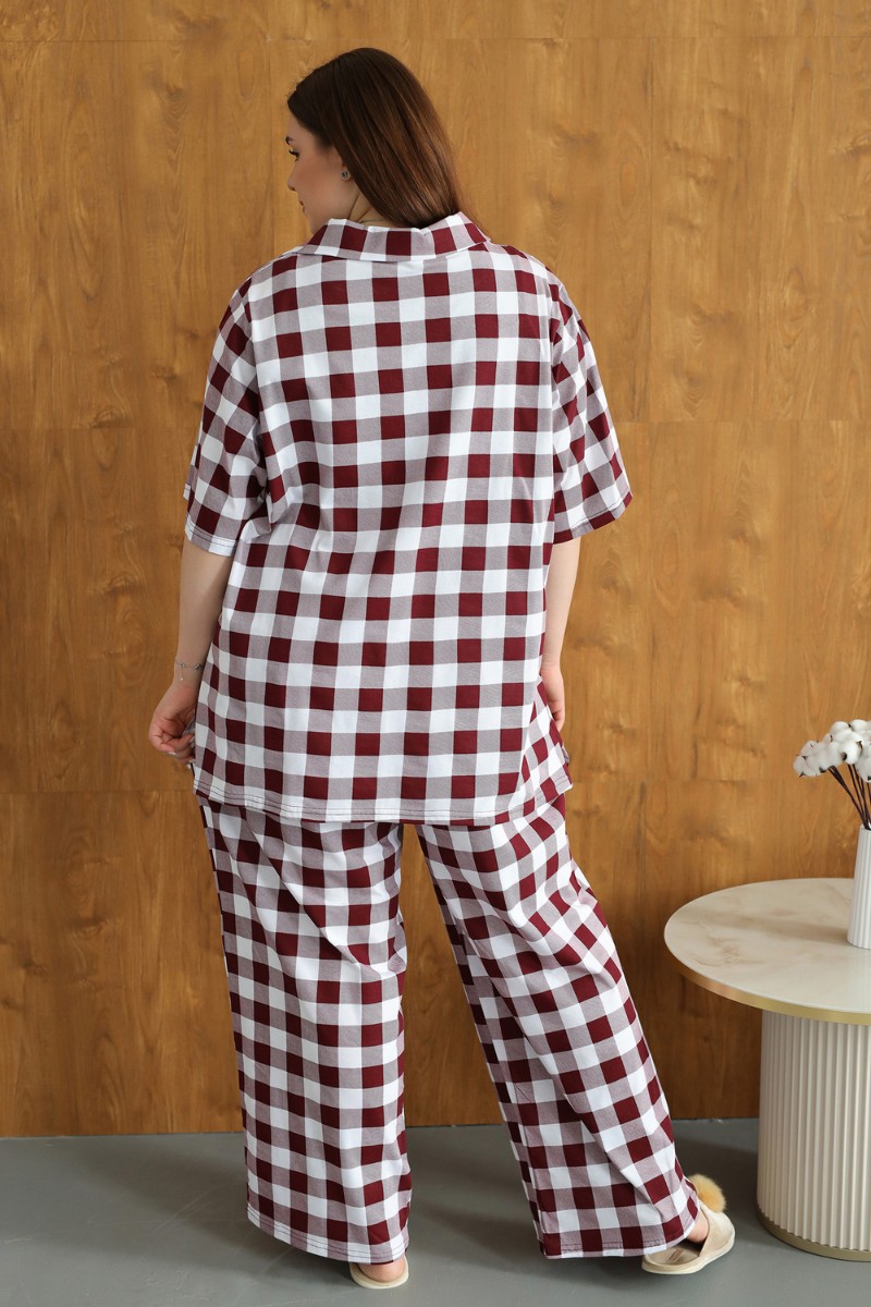 Представляем Вашему вниманию костюм домашний с брюками больших размеров – идеальный выбор для комфортного отдыха дома. Этот трикотажный комплект, выполненный из 100% хлопка, подарит вам ощущение нежности и мягкости на коже. Футболка поло с коротким рукавом и V-образным вырезом горловины обеспечивает удобство и свободу движений. Широкие брюки палаццо с высокой посадкой подчеркнут вашу фигуру и создадут элегантный силуэт. Этот костюм станет прекрасным подарком на любой праздник, будь то Новый год или день рождения. Он подойдет женщинам больших размеров, а также беременным, так как его покрой разработан специально для комфорта и удобства. Благодаря своей универсальности, костюм можно носить круглый год, создавая уютные образы для дома.
