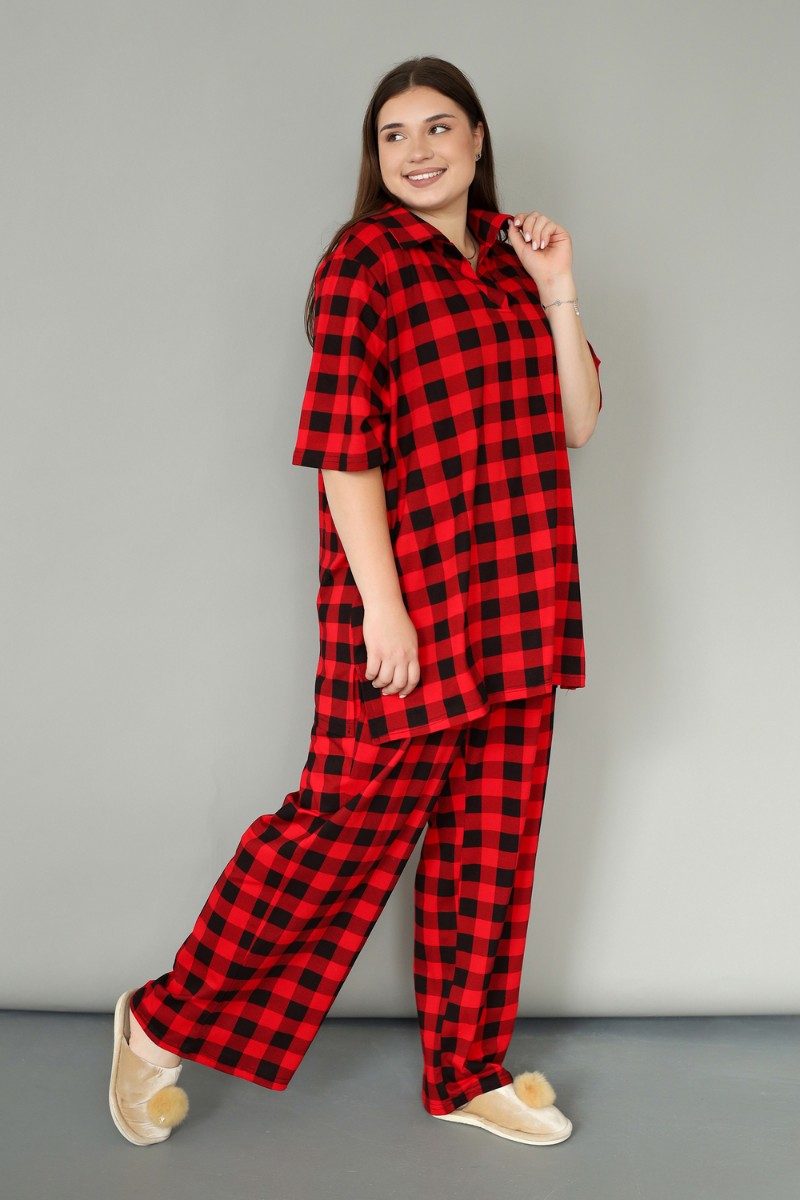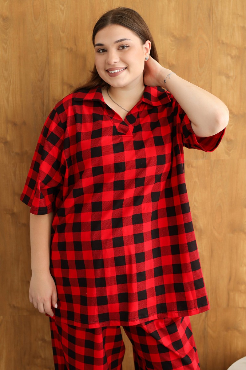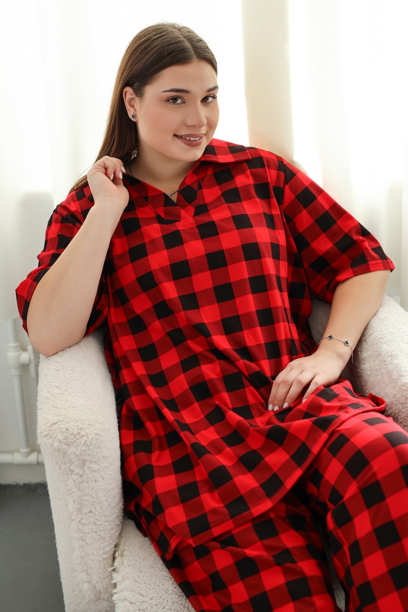 Представляем Вашему вниманию костюм домашний с брюками больших размеров – идеальный выбор для комфортного отдыха дома. Этот трикотажный комплект, выполненный из 100% хлопка, подарит вам ощущение нежности и мягкости на коже. Футболка поло с коротким рукавом и V-образным вырезом горловины обеспечивает удобство и свободу движений. Широкие брюки палаццо с высокой посадкой подчеркнут вашу фигуру и создадут элегантный силуэт. Этот костюм станет прекрасным подарком на любой праздник, будь то Новый год или день рождения. Он подойдет женщинам больших размеров, а также беременным, так как его покрой разработан специально для комфорта и удобства. Благодаря своей универсальности, костюм можно носить круглый год, создавая уютные образы для дома.