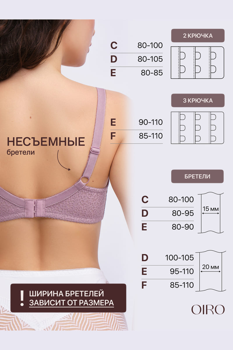 Размеры: Размеры: 80C, 85C, 85D, 85Е, 90C, 90D, 90E, 90F, 95C, 95D, 95E, 95F, 100C, 100D, 100E, 100F, 105D, 105E, 105F, 110F