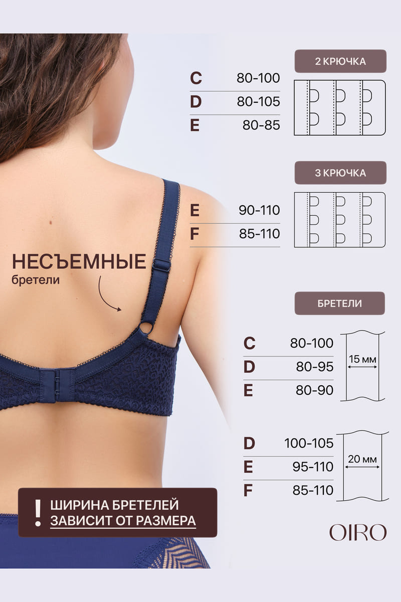 Размеры: Размеры: 80C, 85C, 85D, 85Е, 90C, 90D, 90E, 90F, 95C, 95D, 95E, 95F, 100C, 100D, 100E, 100F, 105D, 105E, 105F, 110F