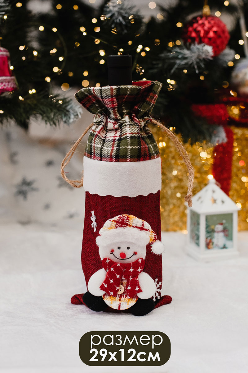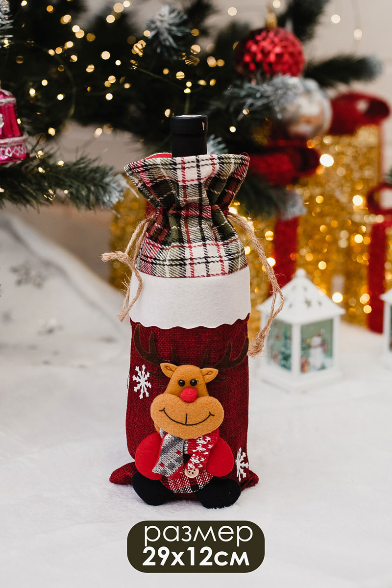 Чехол легко фиксируется удобными завязками, надёжно удерживается на бутылке стандартного объёма (≈0,7–1,0 л), защищает этикетку при переноске и сразу превращает обычную бутылку в эффектный подарок. Этот чехол идеален как самостоятельная праздничная упаковка или как дополнение к подарочному набору. Он универсален по стилю и подойдёт для дома, офиса или корпоративных мероприятий, а яркий рисунок привлекает внимание покупателей и создаёт тёплую атмосферу праздника.