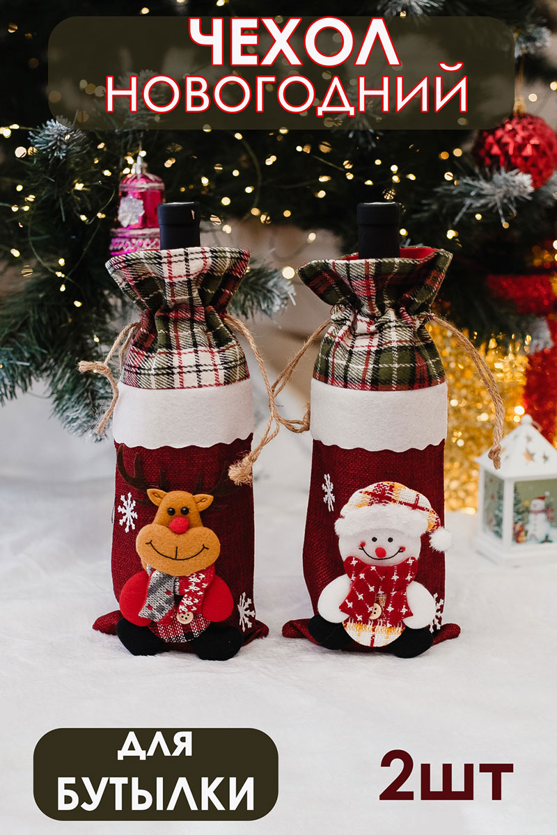 Набор новогодних декоративных чехлов на бутылку 057703 Снеговик и Олень 2 шт.