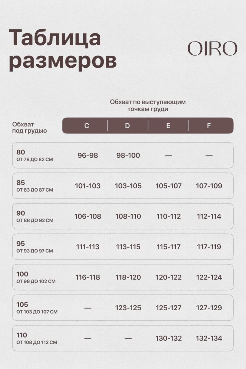 Размеры: Размеры: 80C, 85C, 85D, 85Е, 90C, 90D, 90E, 90F, 95C, 95D, 95E, 95F, 100C, 100D, 100E, 100F, 105D, 105E, 105F, 110E, 110F