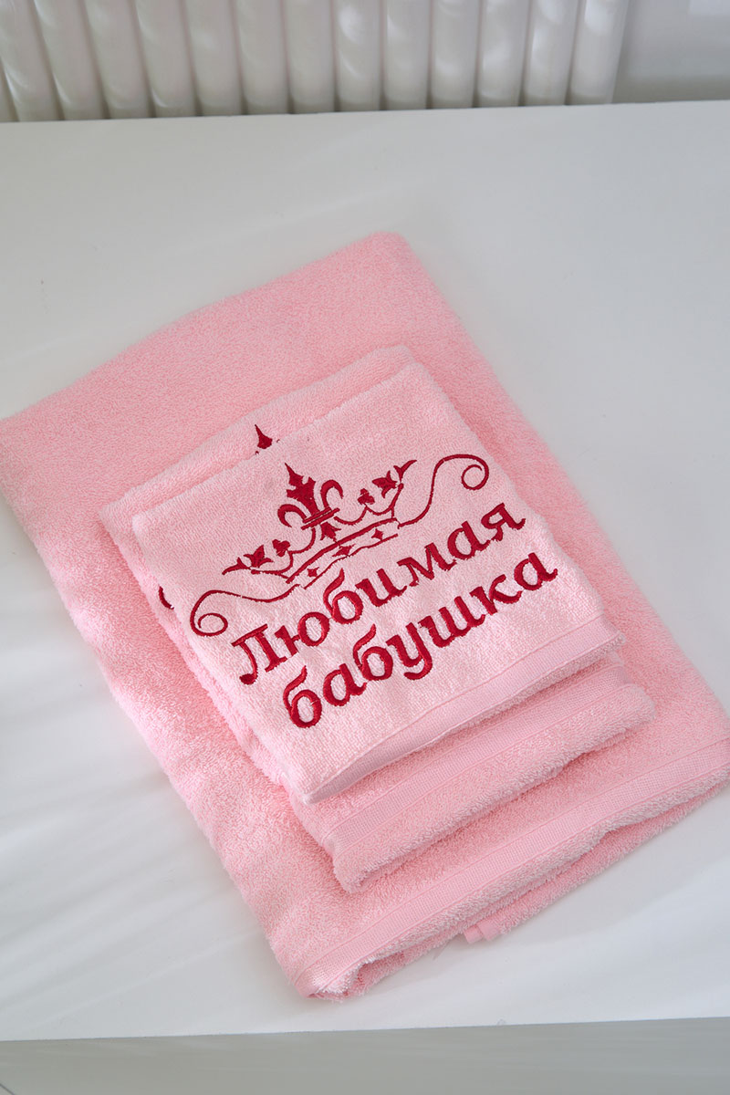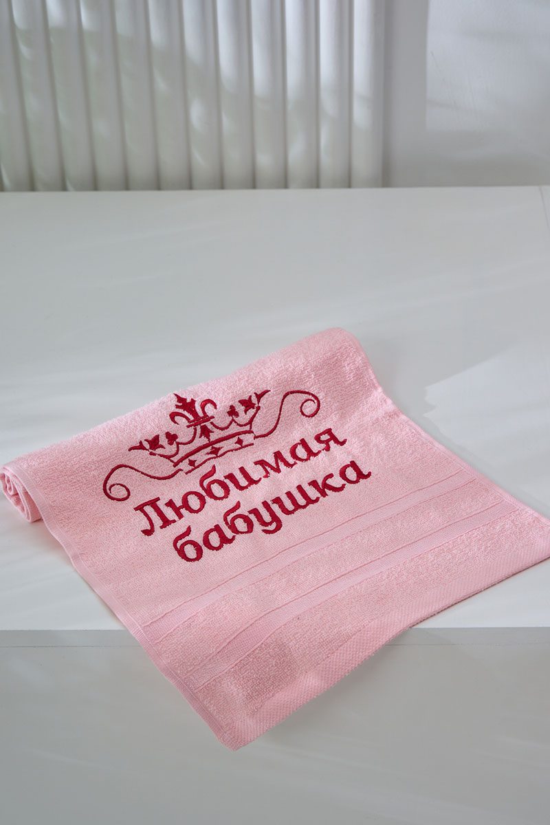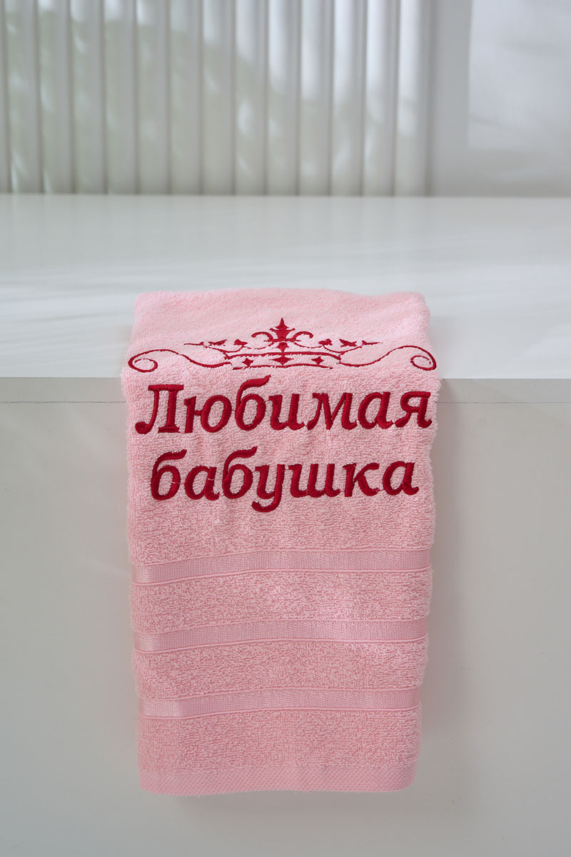 Полотенце махровое с вышивкой №14418/12 "Любимая бабушка" светло-розовый