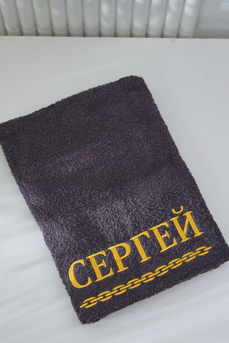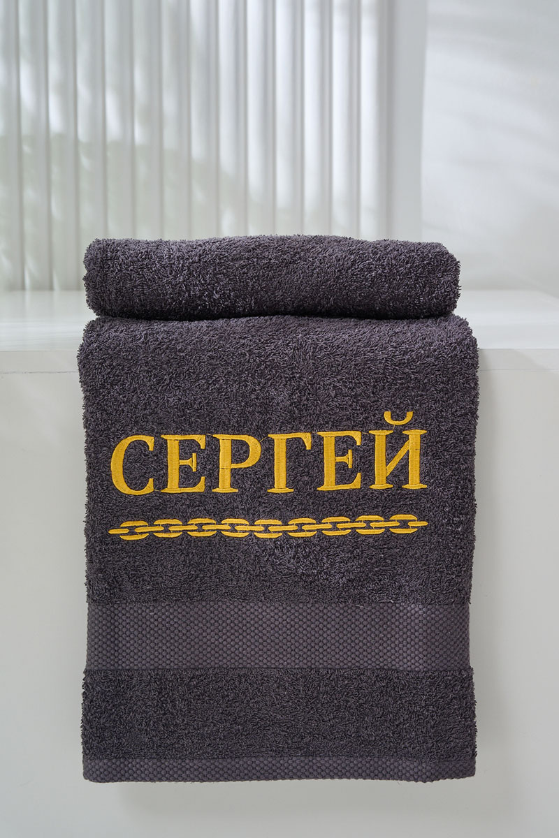 Полотенце махровое с вышивкой №14418/11 "Сергей" графит
