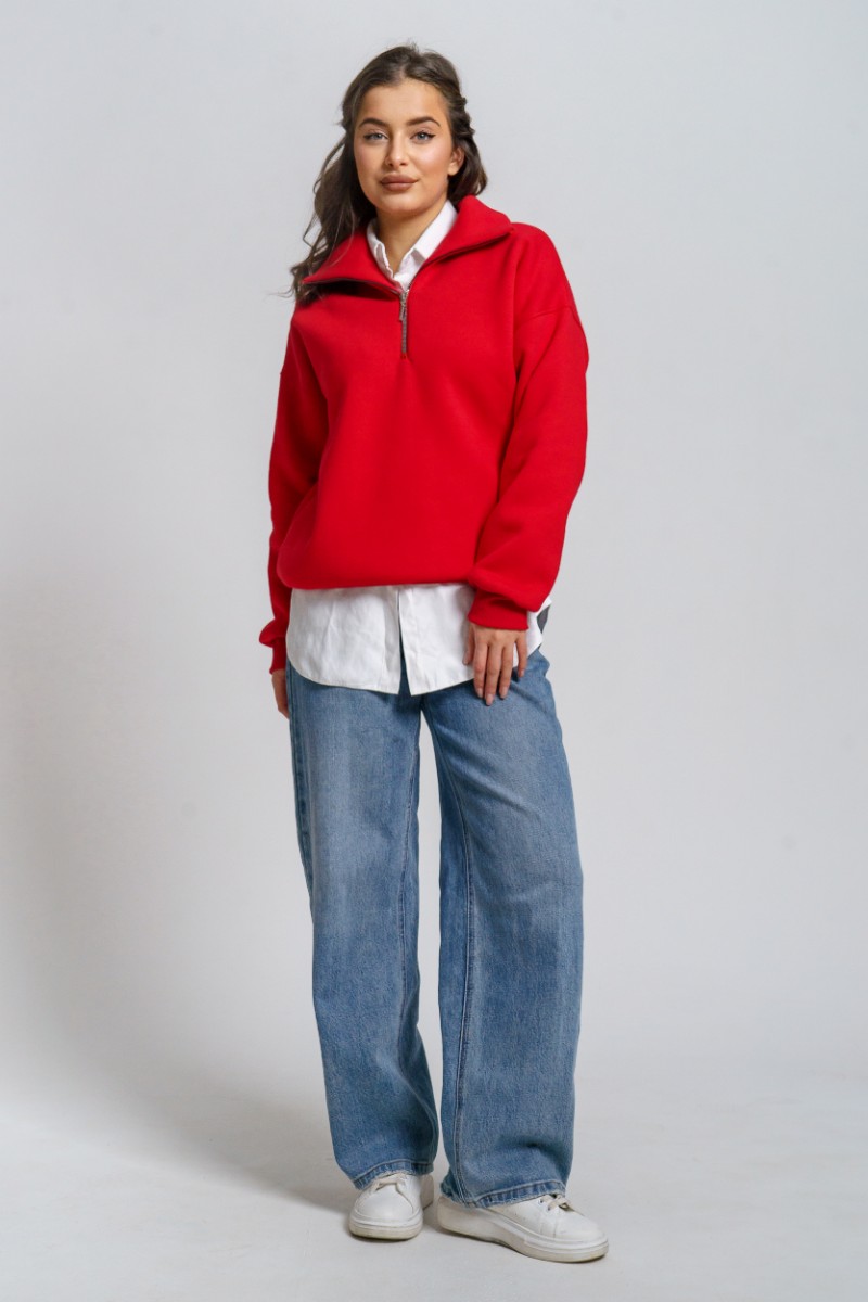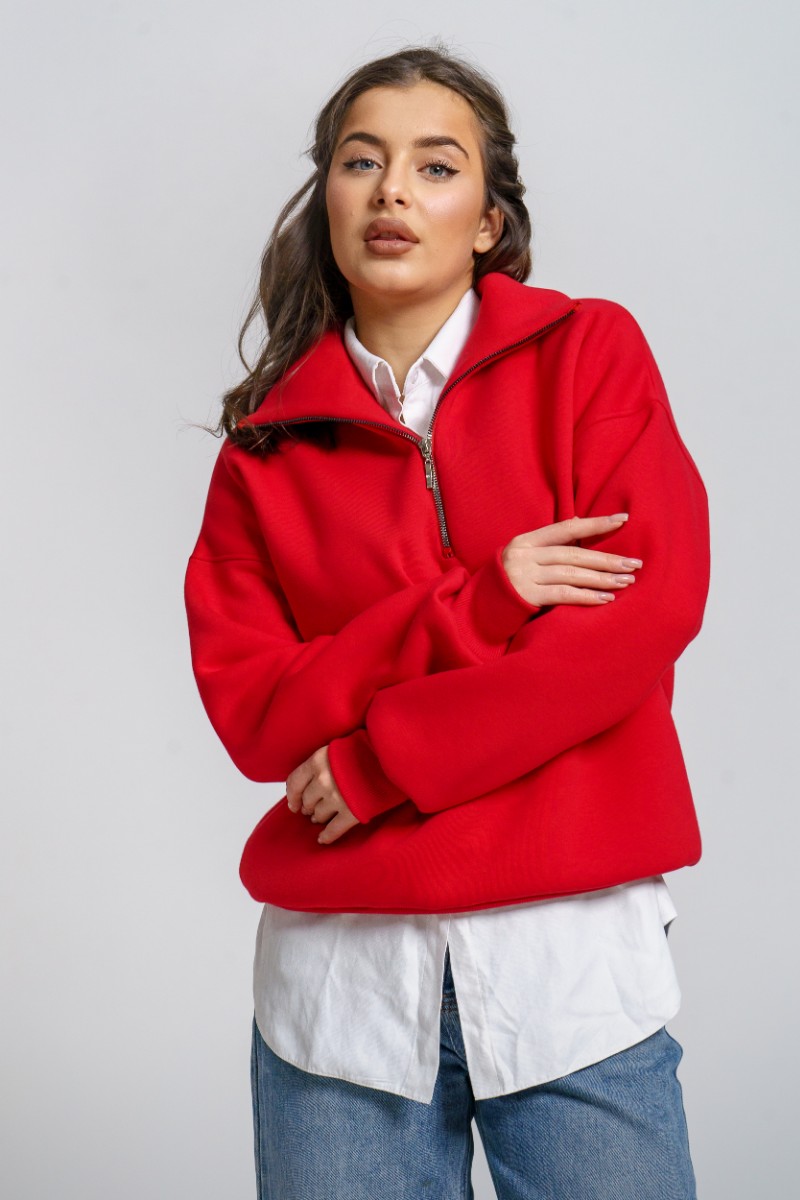Толстовка женская "Сабина" футер 3-х нитка с начесом (р-ры: 42-56) алый