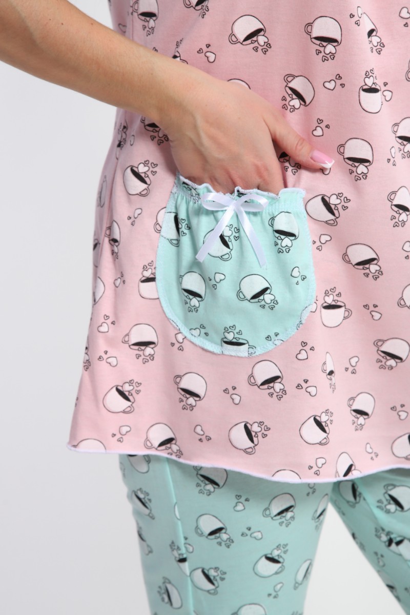 Представляем Вашему вниманию изящную женскую пижаму, сшитую из натуральной, приятной телу кулирки - лёгкий хлопок, позволяющий коже дышать. Комплект обеспечит полную свободу движений в повседневной носке. В ней Ваш сон будет максимально приятным и расслабляющим.
