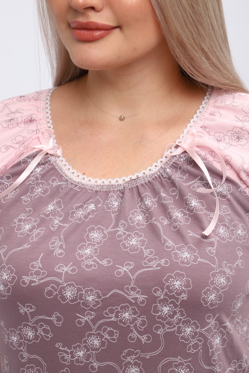 Сорочка женская М296 "Карина" кулирка (р-ры: 46-60) цветы какао