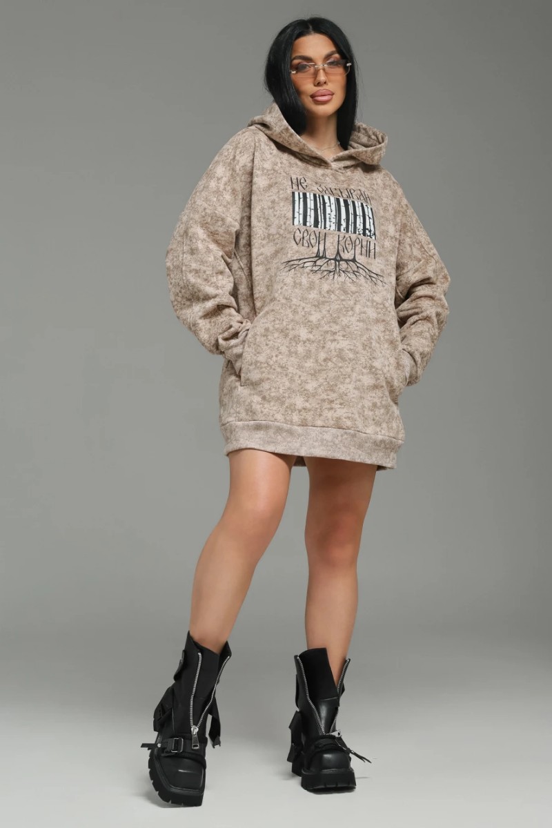 Худи женское "Яхонт" футер 3-х нитка петля пенье фирча (р-ры: 46-60) бежевый варенка