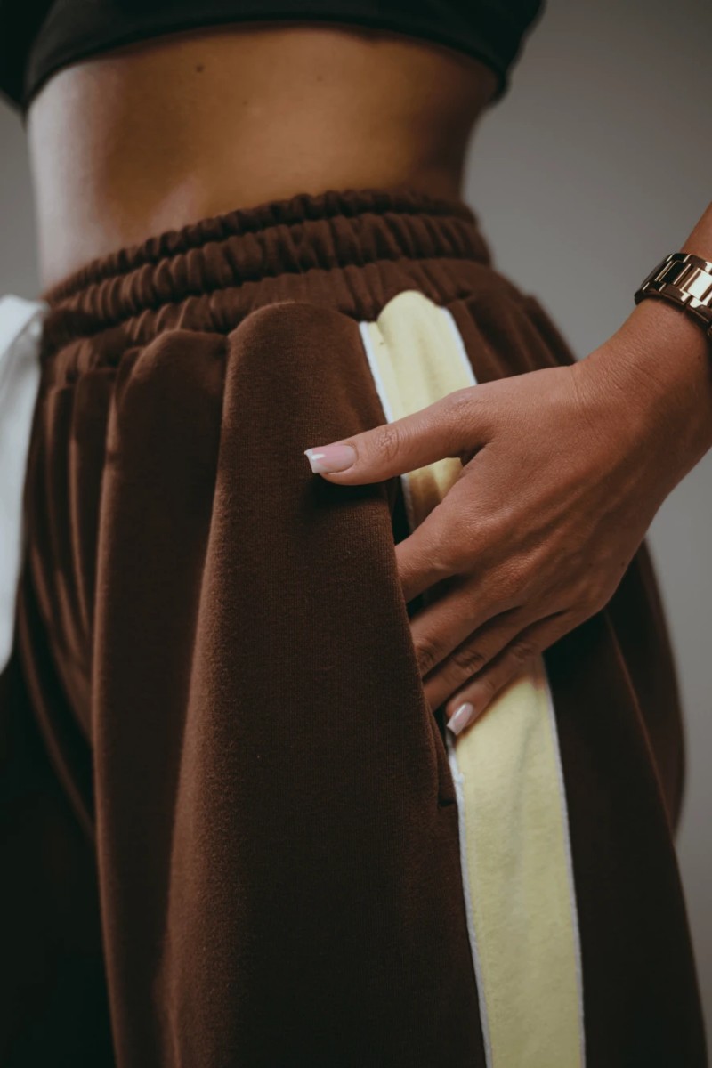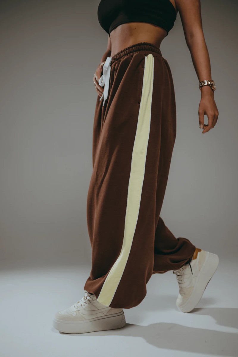 Стильные детали: Брюки дополнены модными лампасами из отделочного материала по боковым швам, что зрительно удлиняет ноги и создает целостный, продуманный образ.