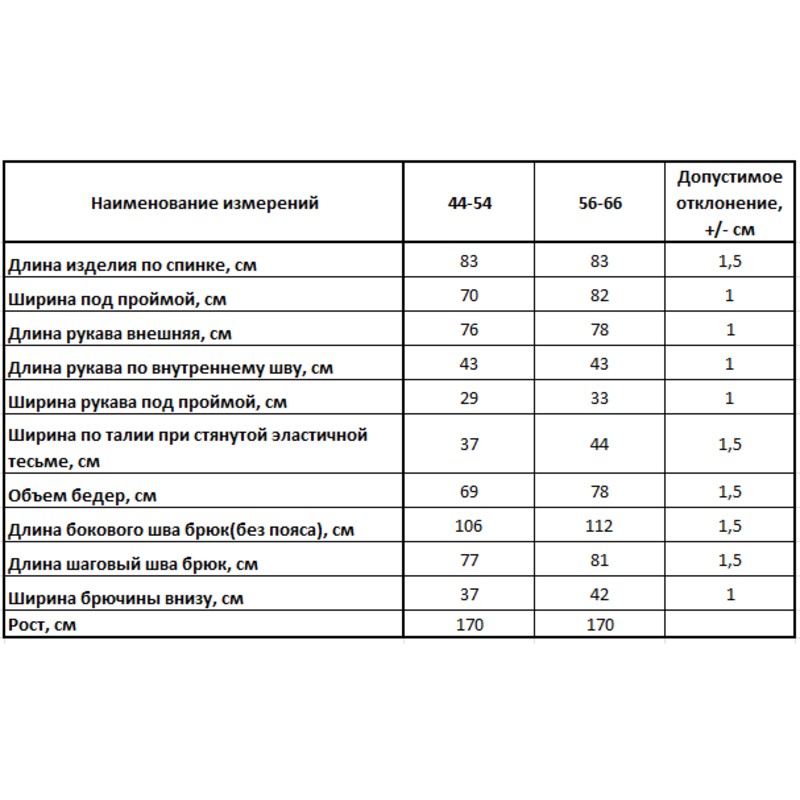 Размеры: 44-66, рост 164-168 см