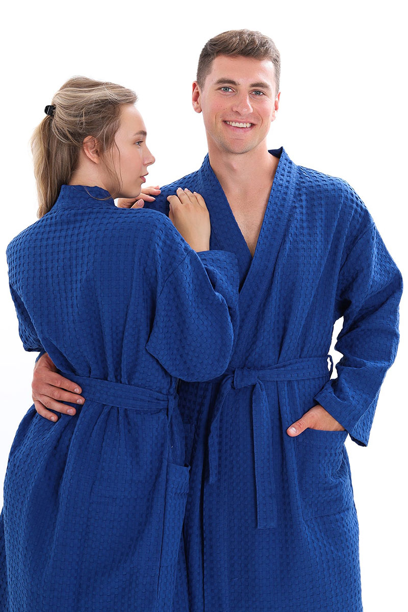 Представляем Вашему вниманию вафельный халат, изготовлен из натурального 100% хлопка. Приятная к телу, плотная и прочная хлопковая ткань быстро впитывает влагу, при этом пропускает воздух, обеспечивая коже дыхание после душа, не вызывая раздражений и аллергии и не оставляя на себе волосков. Халат-полотенце долго сохраняет тепло, позволяет телу дышать, не вызывает аллергии.