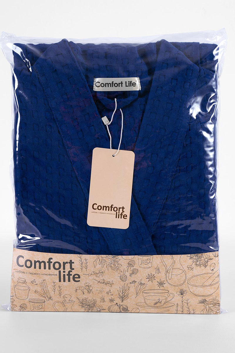 Халат женский вафельный "Relax" (последний размер) синий 56-58