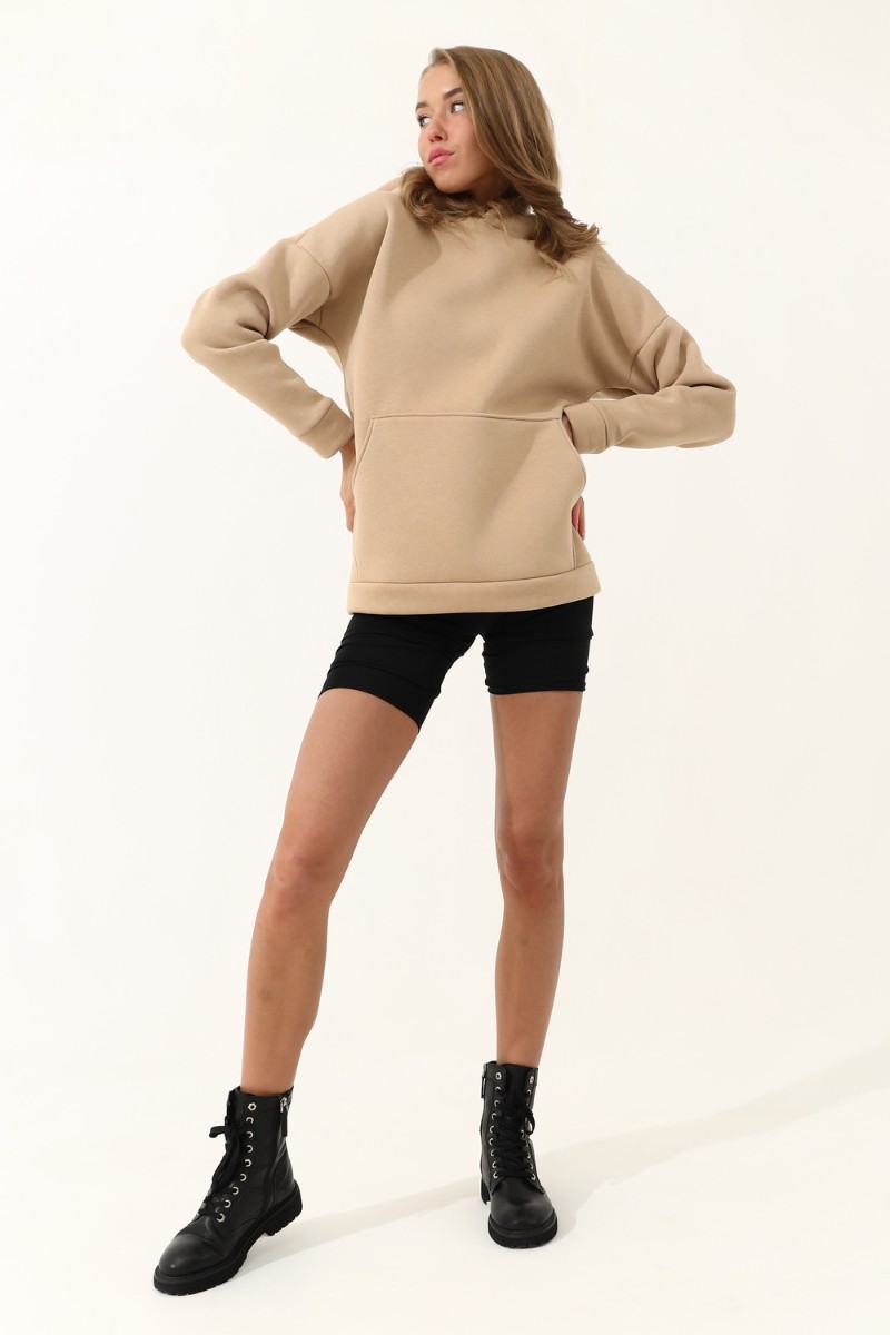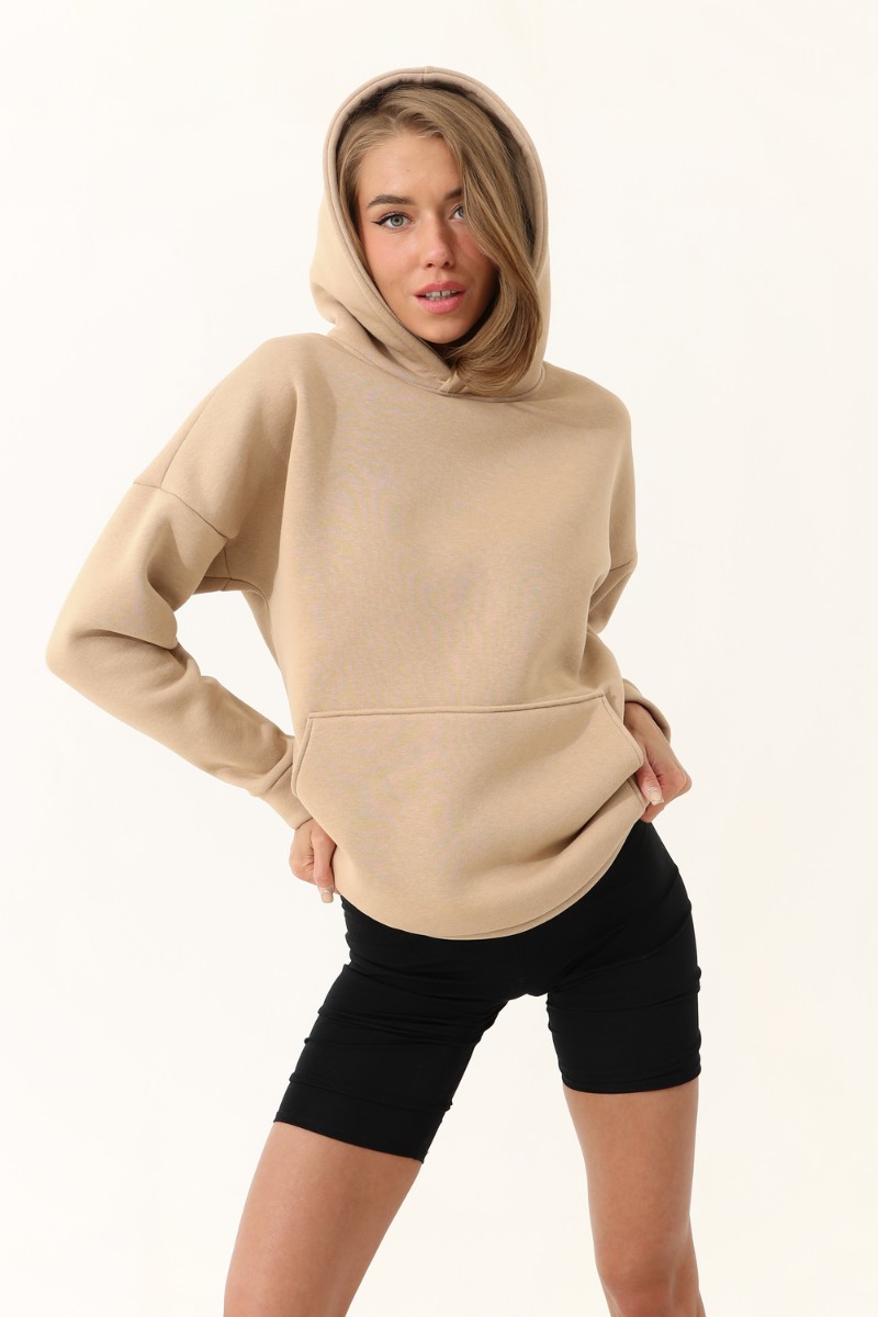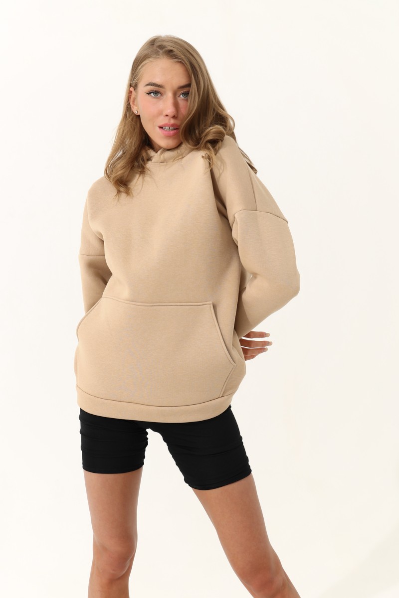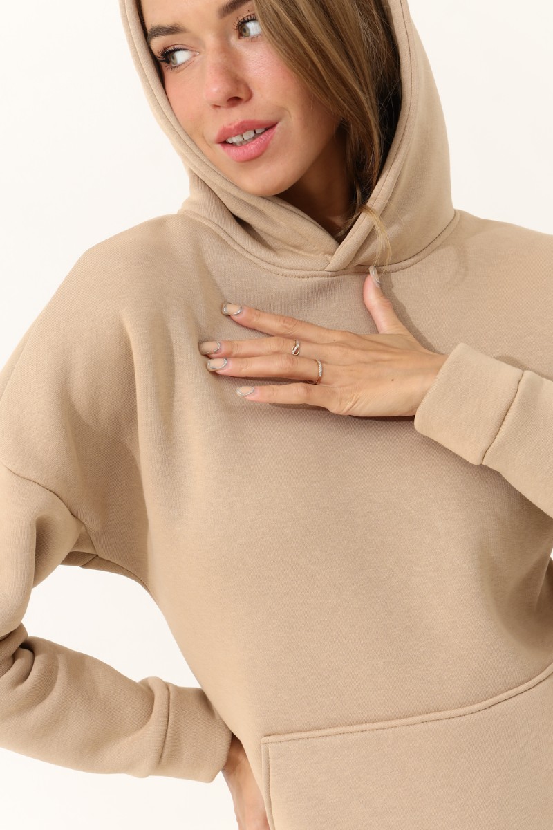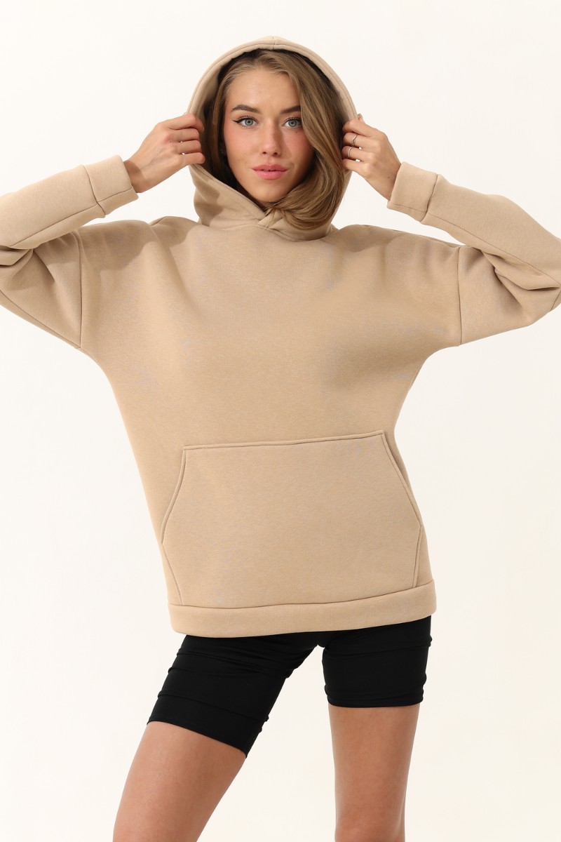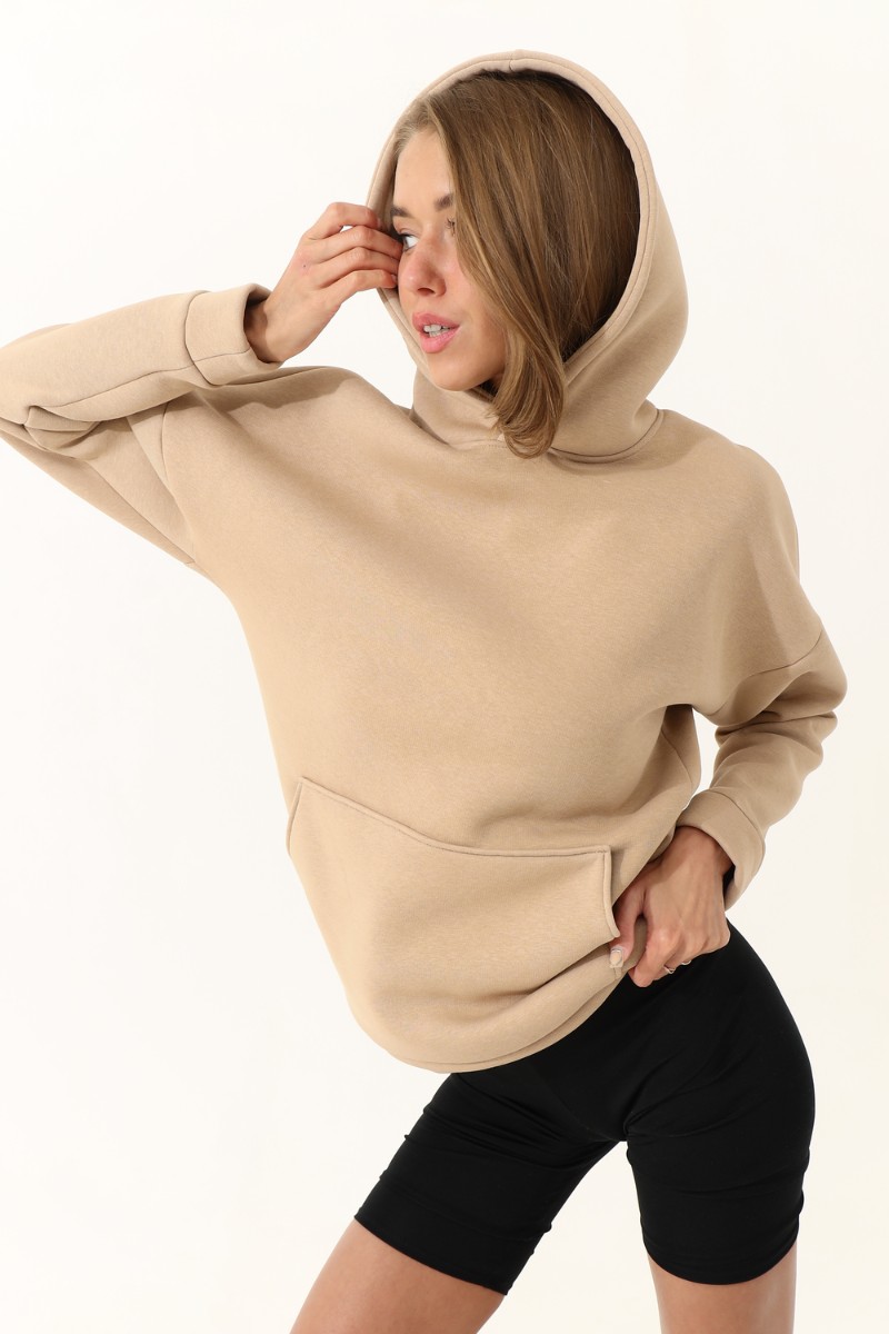 Худи женское №88511 футер 3-х нитка с начесом (последний размер) бежевый 50-52