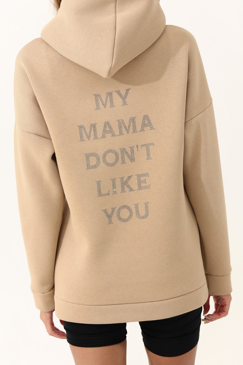 Представляем Вашему вниманию женскую толстовку-худи с надписью из страз на спине - это стильная и модная вещь, которая станет отличным дополнением к Вашему гардеробу. Эта толстовка сочетает в себе комфорт и элегантность, идеально подходит для активного образа жизни и повседневного ношения. Одной из особенностей этой худи является принт на спине, выполненный из блестящих страз, что придает ей выразительности и оригинальности. Красивый принт является ярким акцентом и добавит неповторимости вашему образу. Ткань, из которой сделана эта толстовка, обеспечивает большой комфорт и практичность. Она не склонна к образованию катышек, поэтому даже после многократной стирки она будет выглядеть так же стильно и ново, как и в первый день. Эта толстовка обладает свободным покроем, который позволяет Вам чувствовать себя комфортно и не стесняет движений. Вы сможете свободно выполнять любые задачи и наслаждаться активным образом жизни, не ощущая дискомфорта. Карман кенгуру - это еще одно практичное преимущество этой толстовки. Карман обработан внутри дополнительным материалом, что делает его еще более удобным и функциональным. В нем Вы сможете удобно разместить свои мелочи или просто разогреть руки в холодную погоду. В общем, женская толстовка-худи с надписью из страз на спине - это практичная и удобная вещь, которая подойдет как для повседневного ношения, так и для создания стильных и элегантных образов.