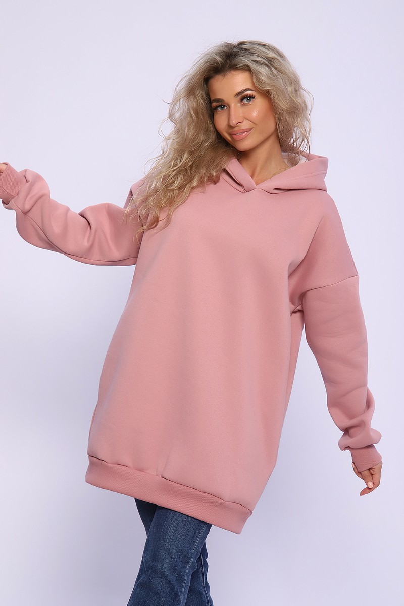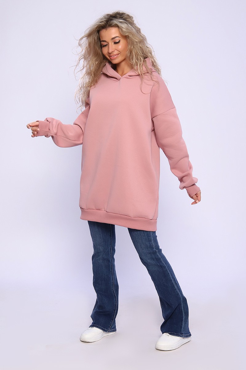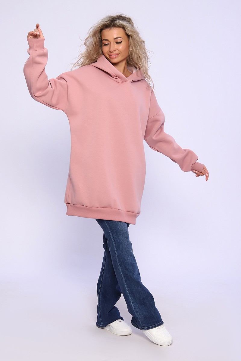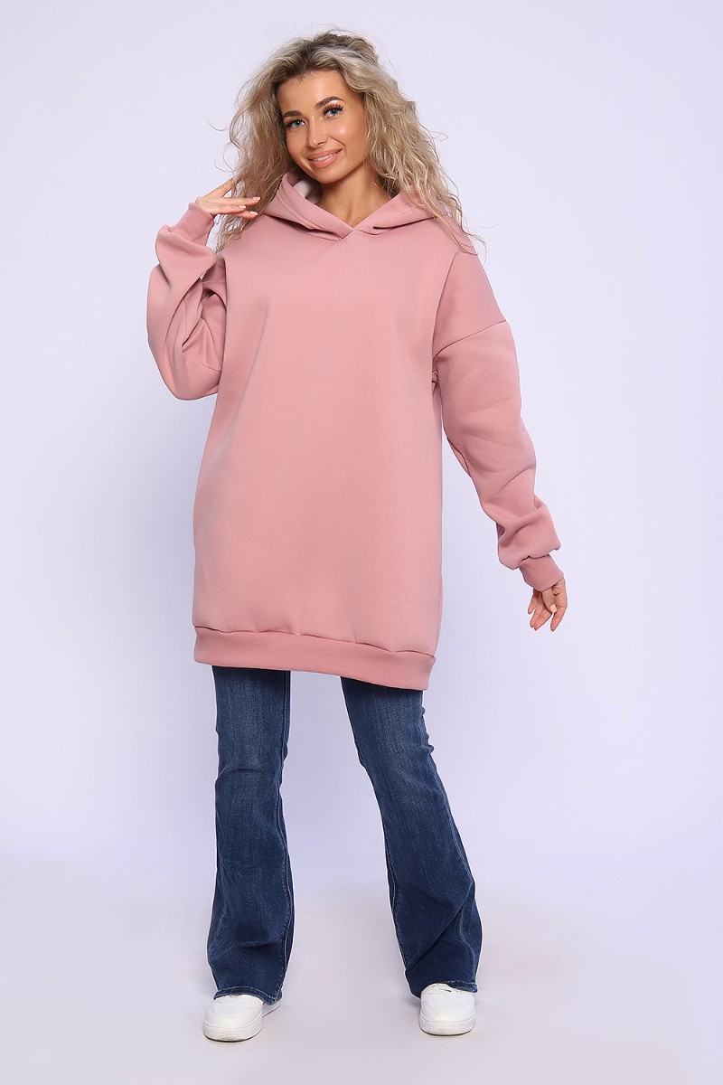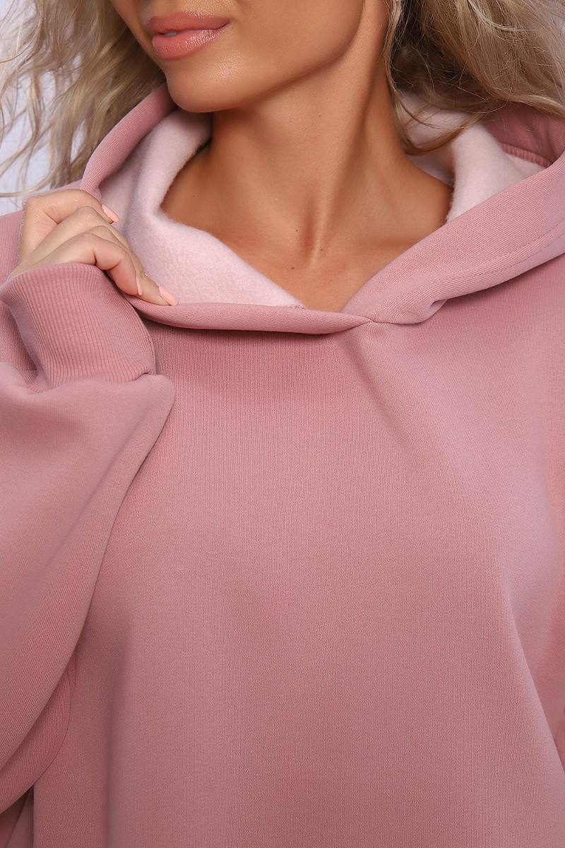 Худи женское №89328 футер 3-х нитка с начесом (последний размер) сухая роза 46,52