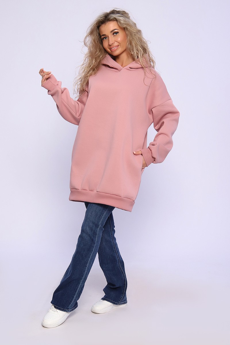 Представляем Вашему вниманию удлиненное объемное худи с капюшоном и карманами в боковых швах. Неотъемлемый элемент женского гардероба.