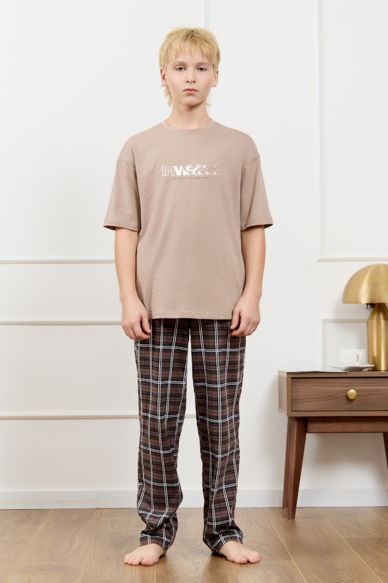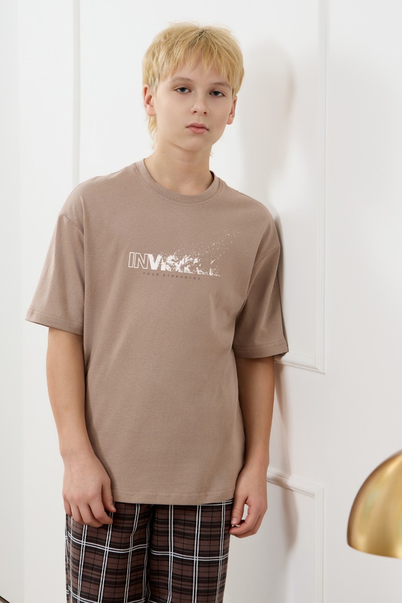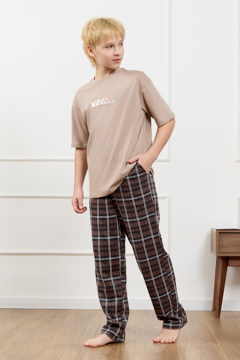 Костюм двойка детский "Браун-1" кулирка (р-ры: 140-170) бежевый