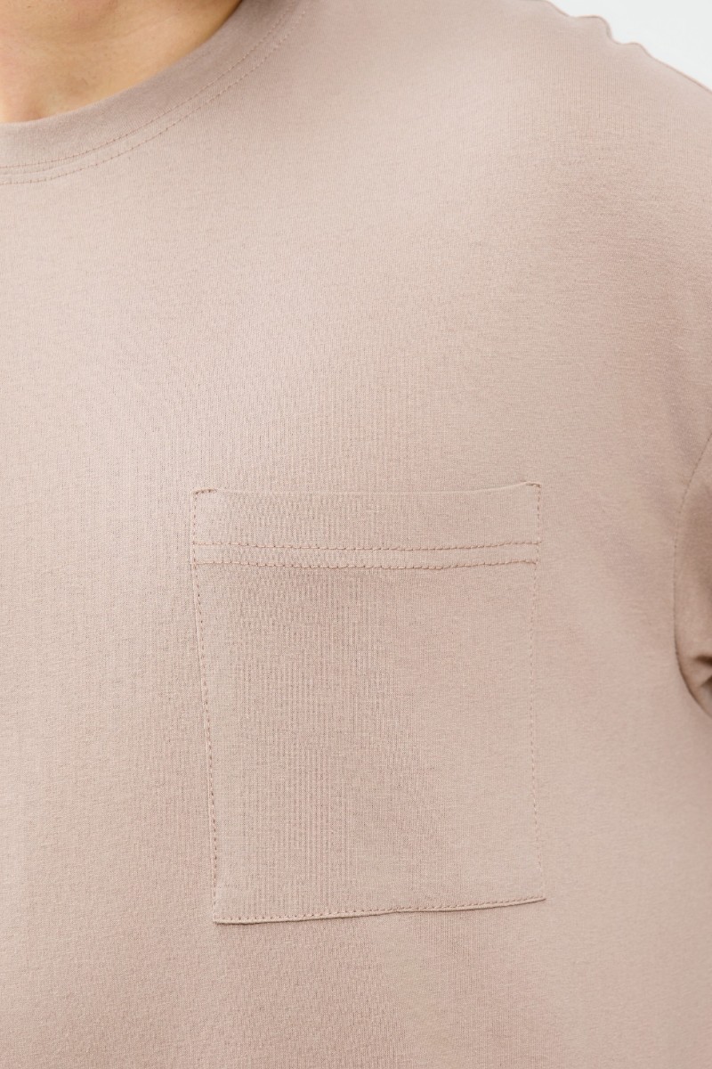 Представляем Вашему вниманию костюм мужской из трикотажного полотна "кулирка", состоящий из футболки и брюк. Футболка классического покроя, с короткими втачными рукавами и приспущенной линией плеч, горловиной овальной формы, обработанной втачной планкой и нагрудным накладным карманом на детали переда. Нижние срезы рукавов и изделия обработаны подгибкой. По горловине настрочена отделочная строчка. Брюки - длинные, на притачном поясе с эластичной тесьмой внутри, с карманами в боковых швах. Нижние срезы обработаны подгибкой.