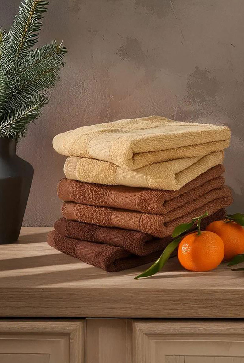 Набор махровых полотенец "Сафари" 40х60 (6 шт.) темно-коричневый, светло-коричневый, бежевый