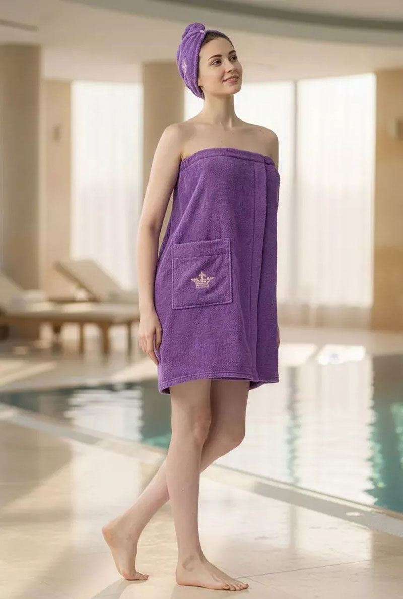 Набор для сауны женский махровый "Корона" (р-ры: 44-60) фуксия