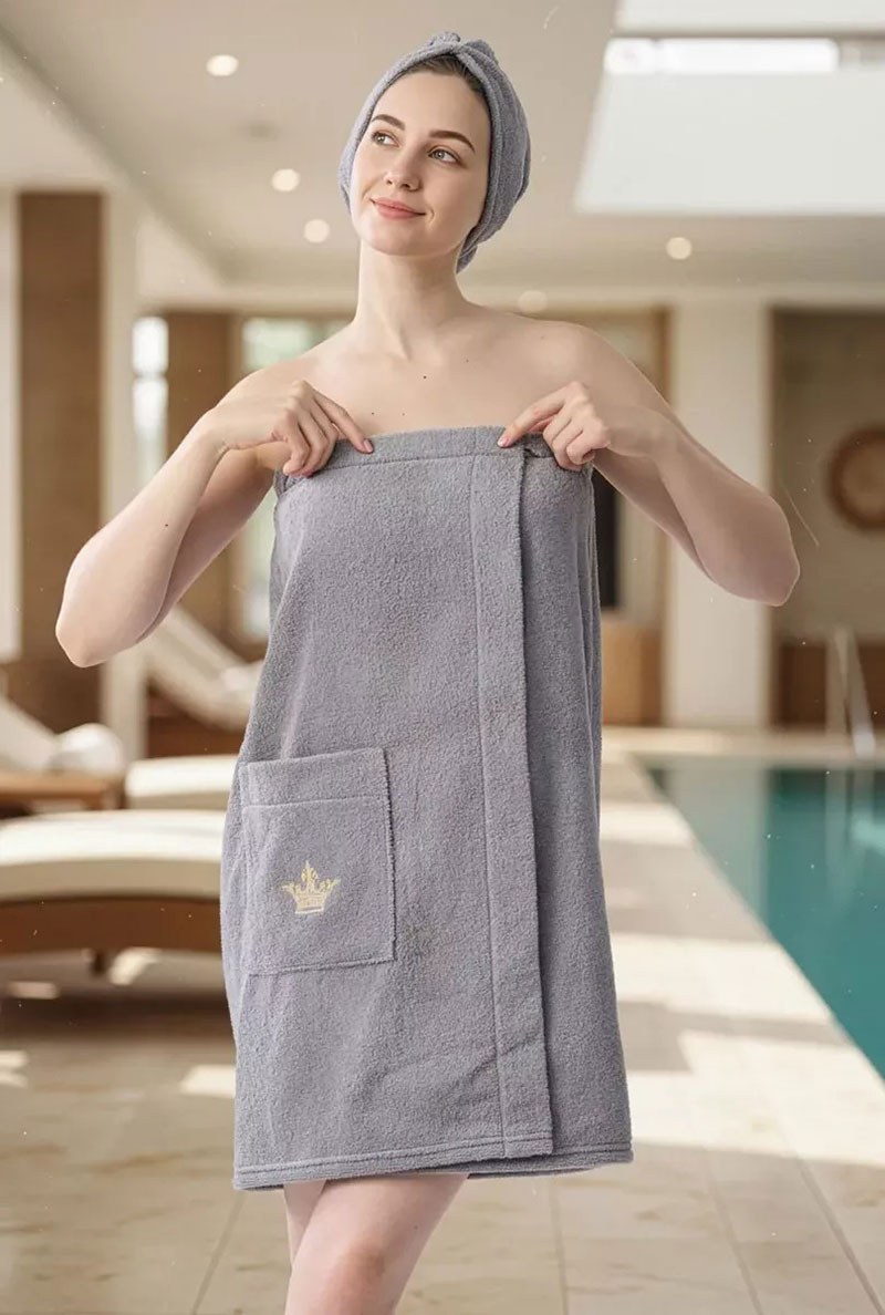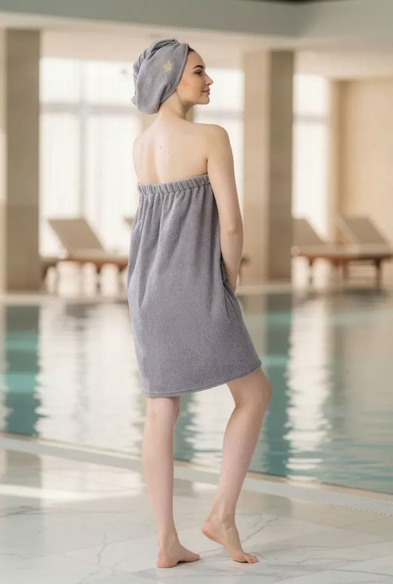 Набор для сауны женский махровый "Корона" (р-ры: 44-60) серый