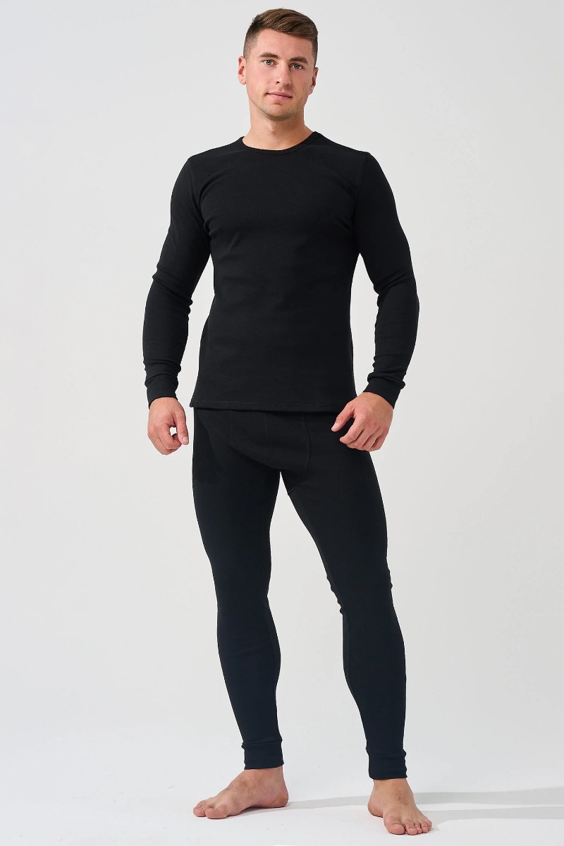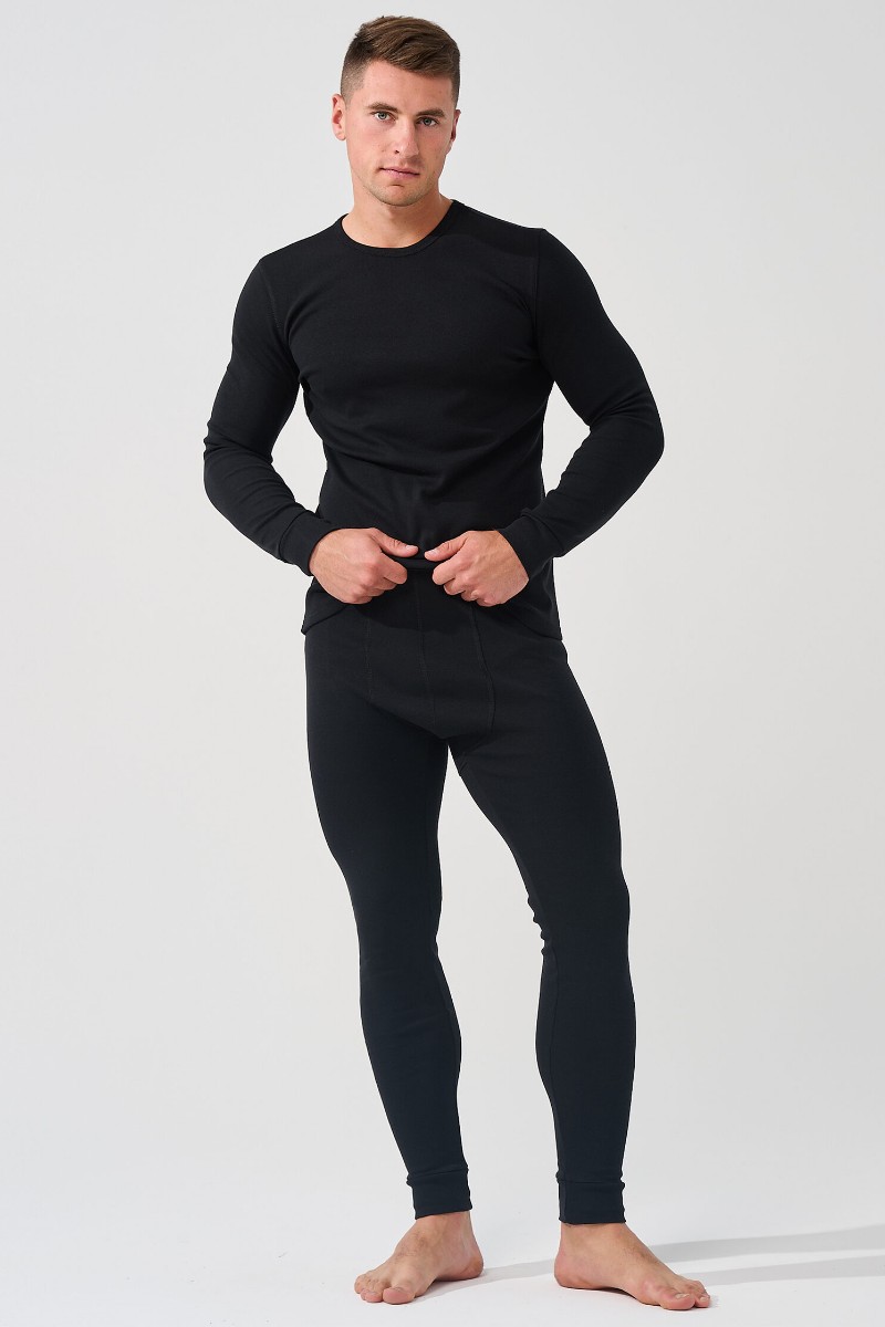 Костюм двойка мужской "Термобелье" (базовое)" 1775-Рн хлопок с эластаном (р-ры: 40-58) черный