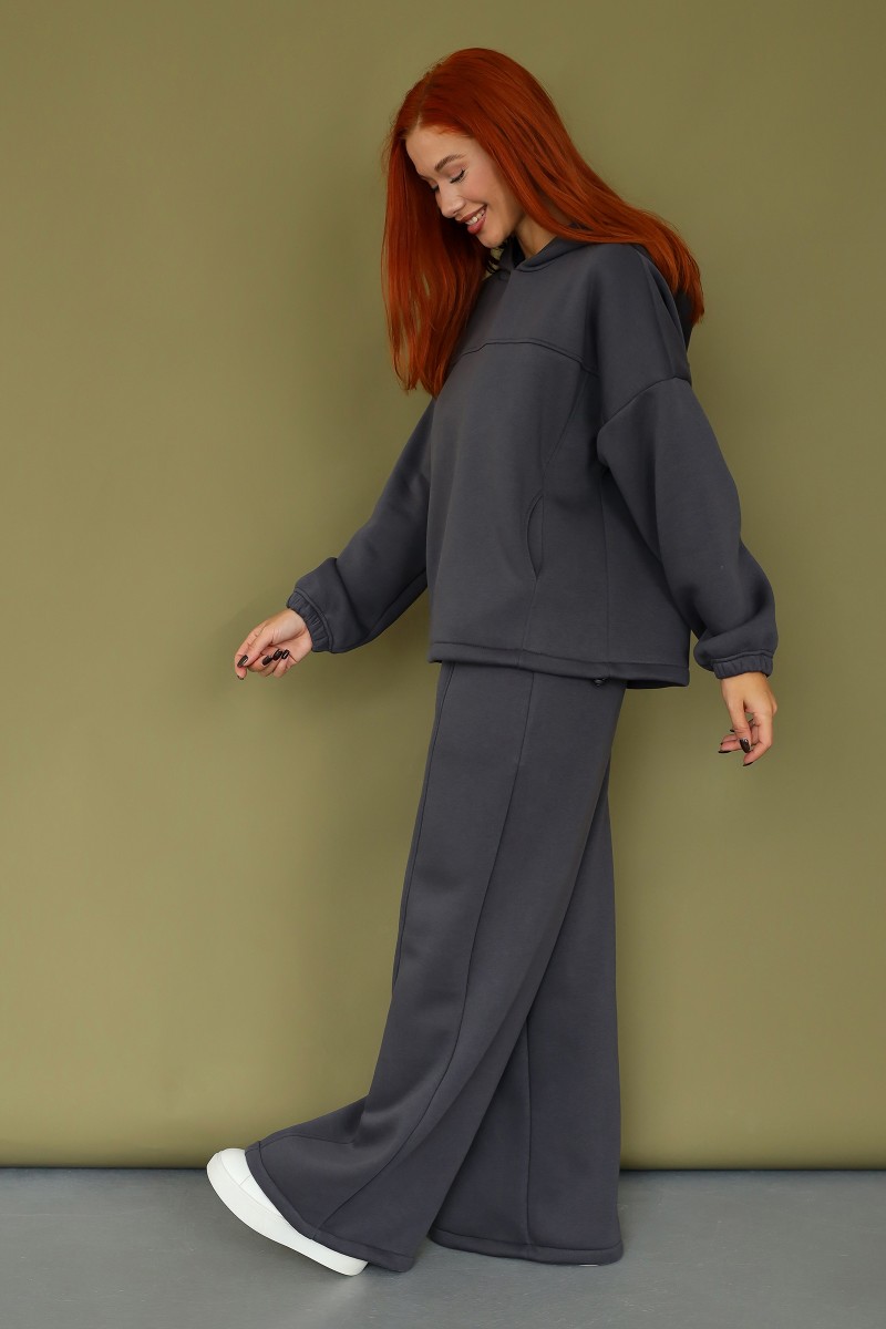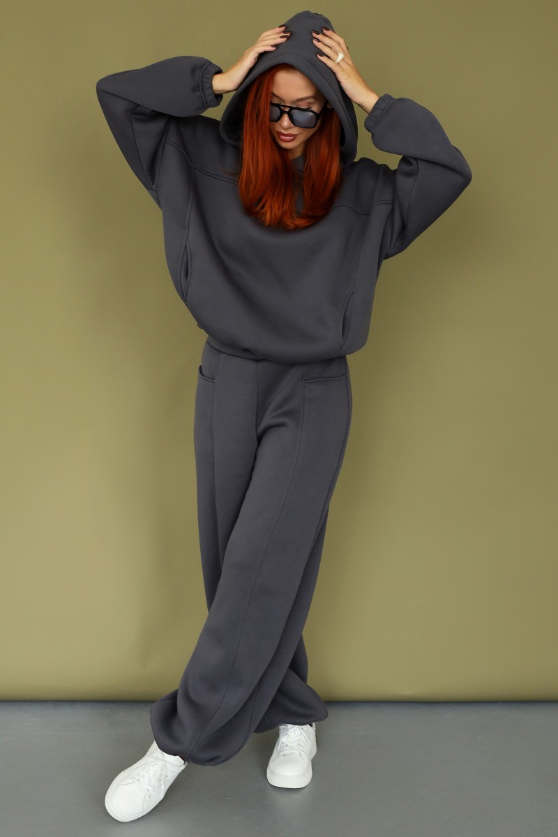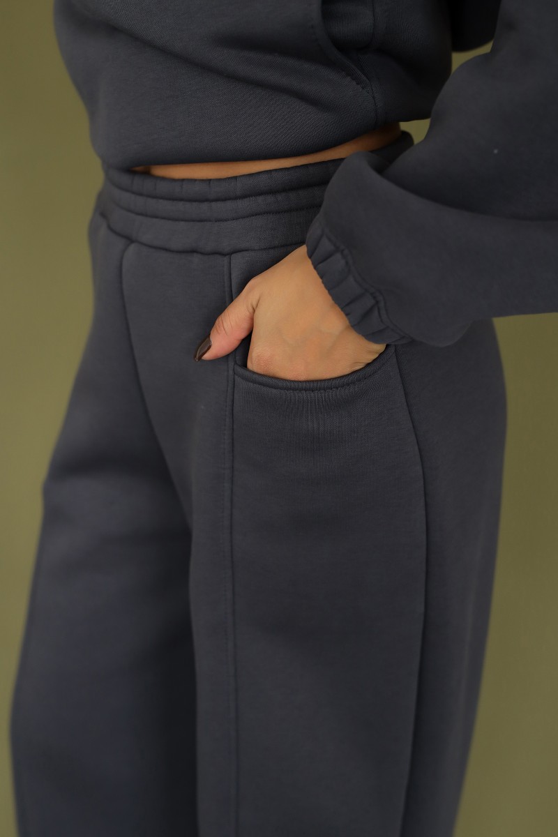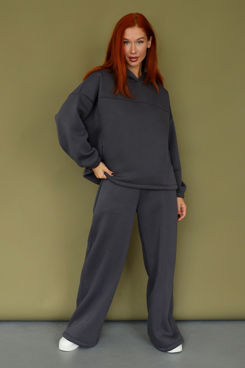 Костюм двойка женский 2246 футер 3-х нитка с начесом (р-ры: 42-52) темно-серый