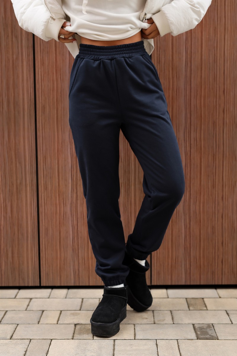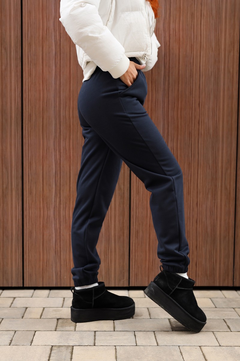 Брюки женские 2252/4 футер 3-х нитка с мехом (р-ры: 44-58) синий