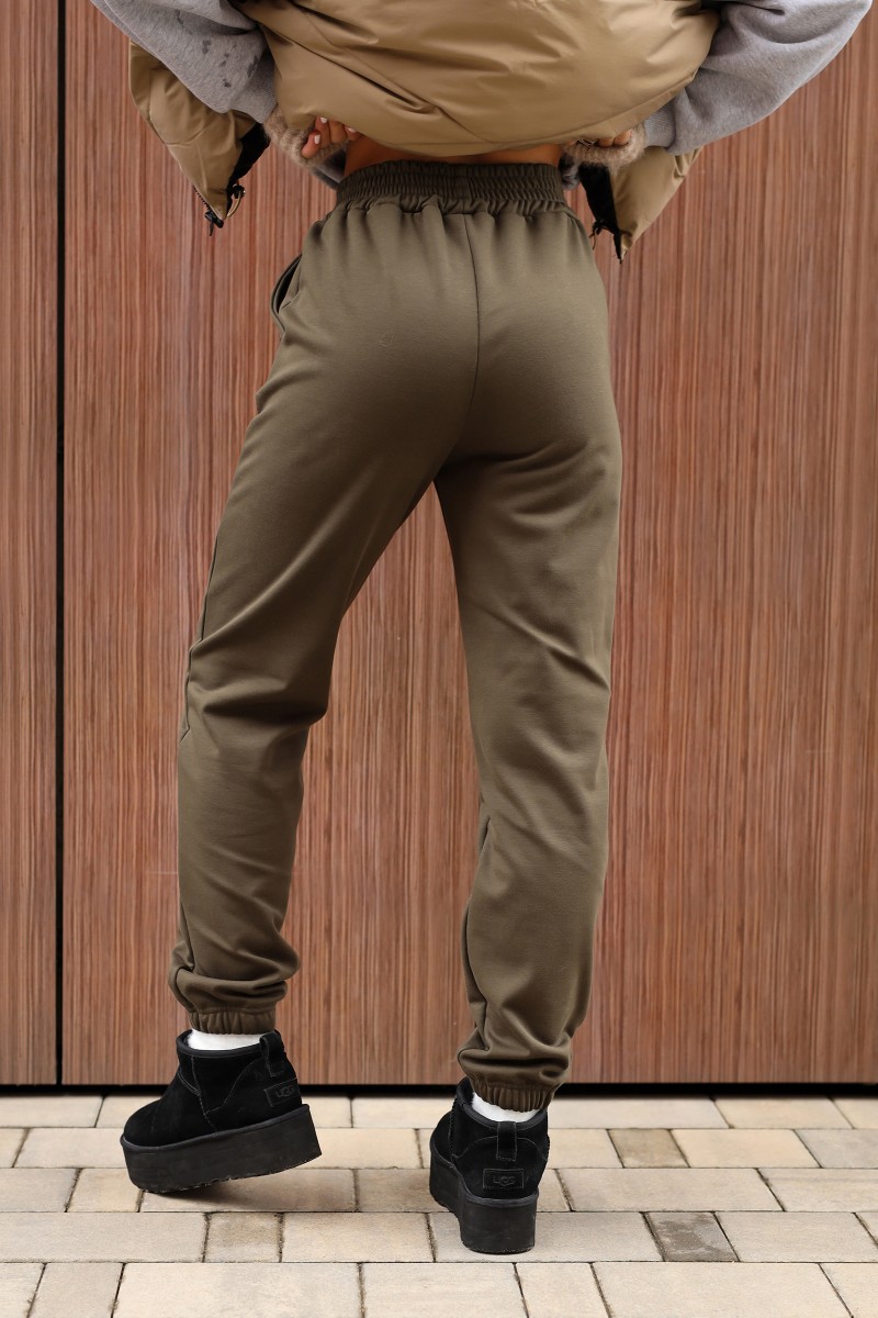 Брюки женские 2252/3 футер 3-х нитка с мехом (р-ры: 44-58) хаки