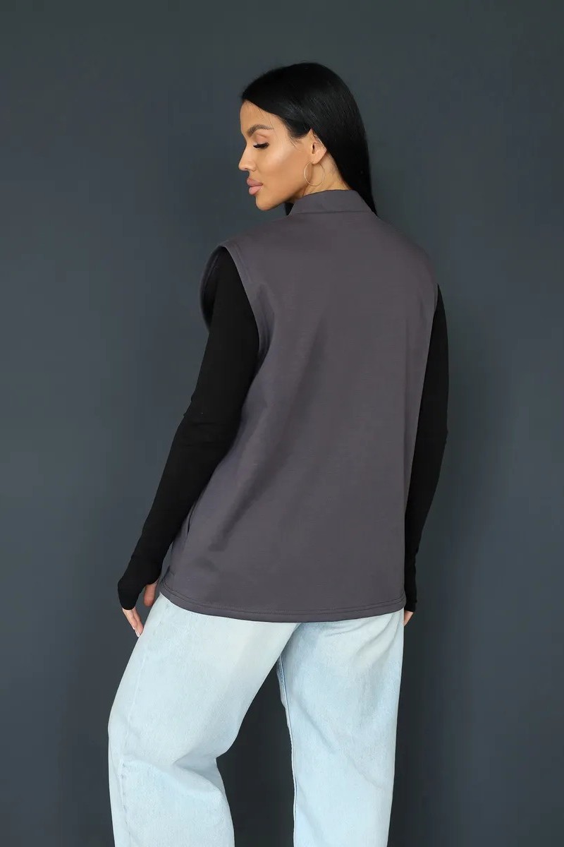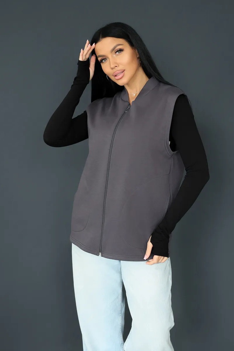 Жилет женский 2247/1 футер 3-х нитка с мехом (р-ры: 48-56) серый